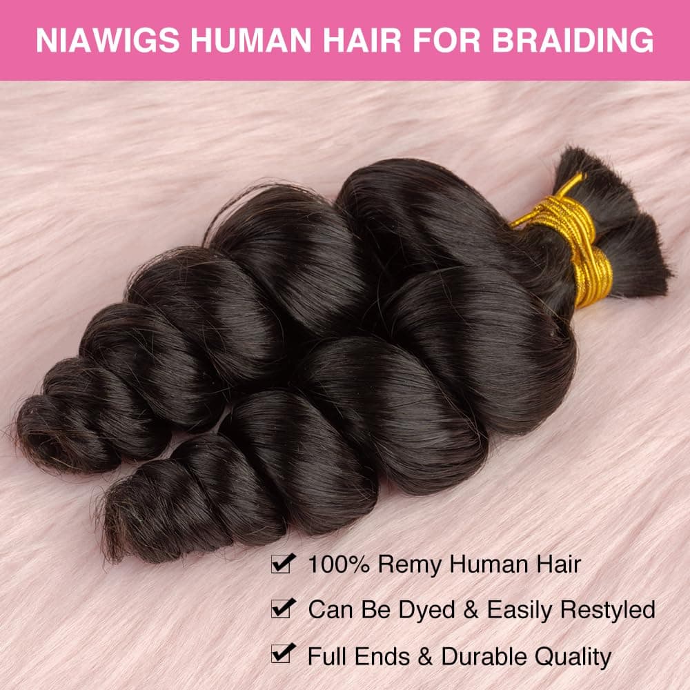 2. Cabello a granel humano sin trama Niawigs Braiding Hair está hecho con cabello humano 100% Remy. Suavidad y suavidad.