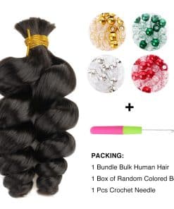 Cabello a granel 100% humano para trenzar ondas sueltas Cabello para trenzar humano sin trama para cabello de ganchillo negro natural 100 gramos por paquete (16 pulgadas, ondas sueltas). El cabello a granel Niawigs Braiding Hair está hecho con cabello humano 100% Remy, lo que garantiza su suavidad y suavidad. Cada paquete contiene 100 gramos de cabello, y se recomienda 2-3 paquetes para longitudes de 14 a 20 pulgadas y 3-4 paquetes para longitudes de 22 a 24 pulgadas para una cabeza completa. Este cabello a granel es adecuado para todas las edades y se puede estilizar de varias formas, como colas de caballo, trenzas africanas, etc. Es perfecto para diversas ocasiones, como bodas, fiestas, citas o simplemente para el uso diario. Asegúrate de cuidar el cabello con champú neutro y acondicionador regularmente para mantener su calidad y poder reutilizarlo.