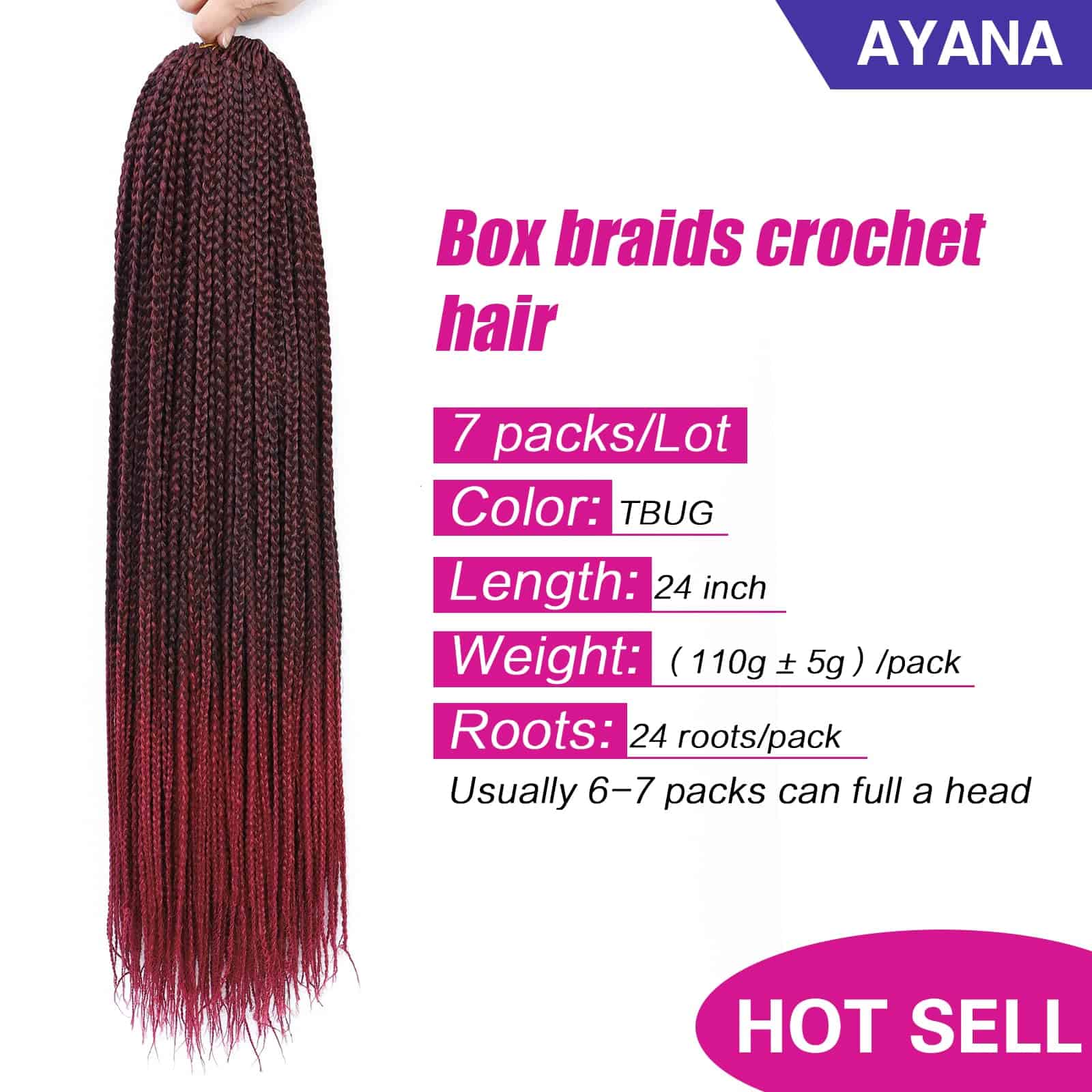 Cabello Crochet de Trenza en Caja 24 Pulgadas 7 Paquetes