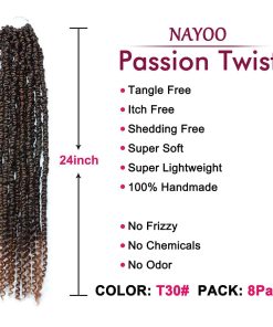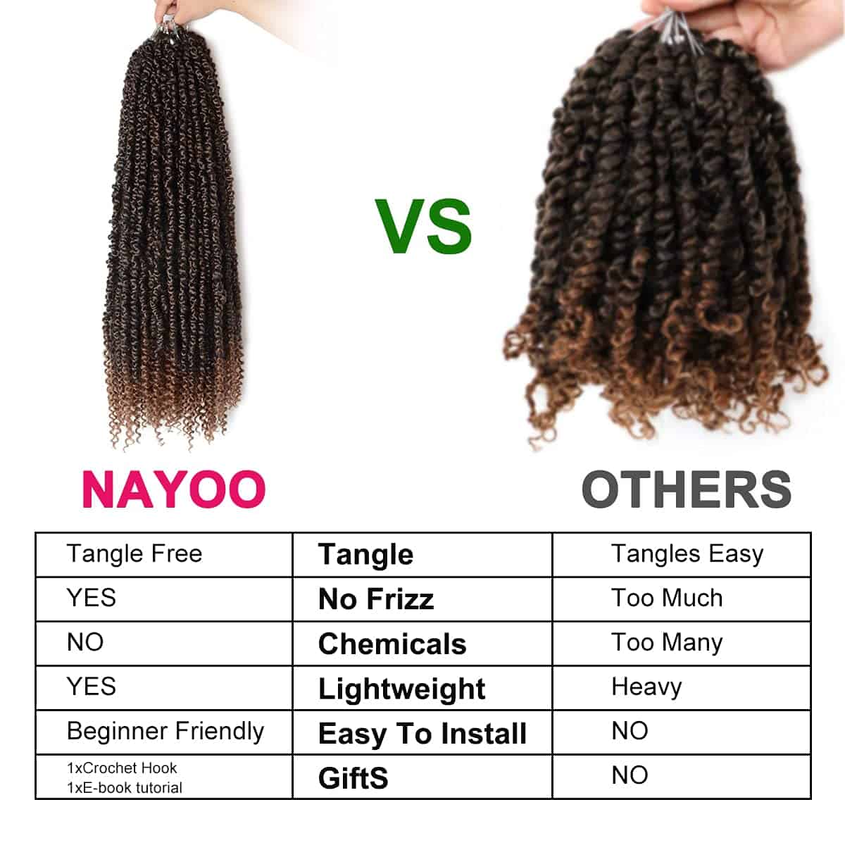 1. Cabello de Trenza de Pasión NAYOO – 100% Hecho a mano por estilistas profesionales de trenzas (no fabricado). Pelo de trenza de pasión pre-torcido, sin frizz, sin químicos, libre de pérdida, libre de enredos, extensión de pelo rizado crochet para mujeres negras.
