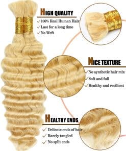 Cabello humano virgen de calidad: Nuestro cabello de trenzar humano sin costura está hecho de cabello humano de calidad, asegurando una textura y apariencia natural que hace que tu peinado se vea más auténtico. Se pueden hacer múltiples estilos: El cabello de trenzar humano puede ser utilizado para una variedad de estilos de cabello, como trenzas boho sin nudos, trenzas bohemias, rizos boho y trenzas micro, etc. Fácil de trenzar y mantener: Nuestro cabello de trenzar humano es súper suave y suave, muy fácil de peinar y mantener. Duradero y garantía de calidad: Nuestro cabello de trenzar humano rizado es duradero, se puede reutilizar y puede durar hasta 1 año con el cuidado adecuado. Sin productos químicos: Nuestro cabello de trenzar humano está hecho de 100% de cabello humano virgen, no se utiliza ningún químico, no causará alergias en el cuero cabelludo.