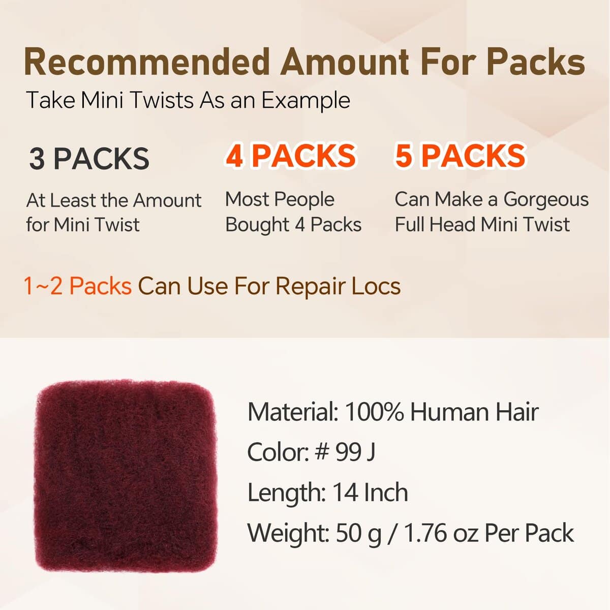 PACKAGE INCLUDING- 50g/pack, tamaños de 12 pulgadas a 22 pulgadas, 3 paquetes pueden hacer una cabeza completa, 5 paquetes pueden hacer una hermosa cabeza completa, esperando con ansias tu viaje de belleza.