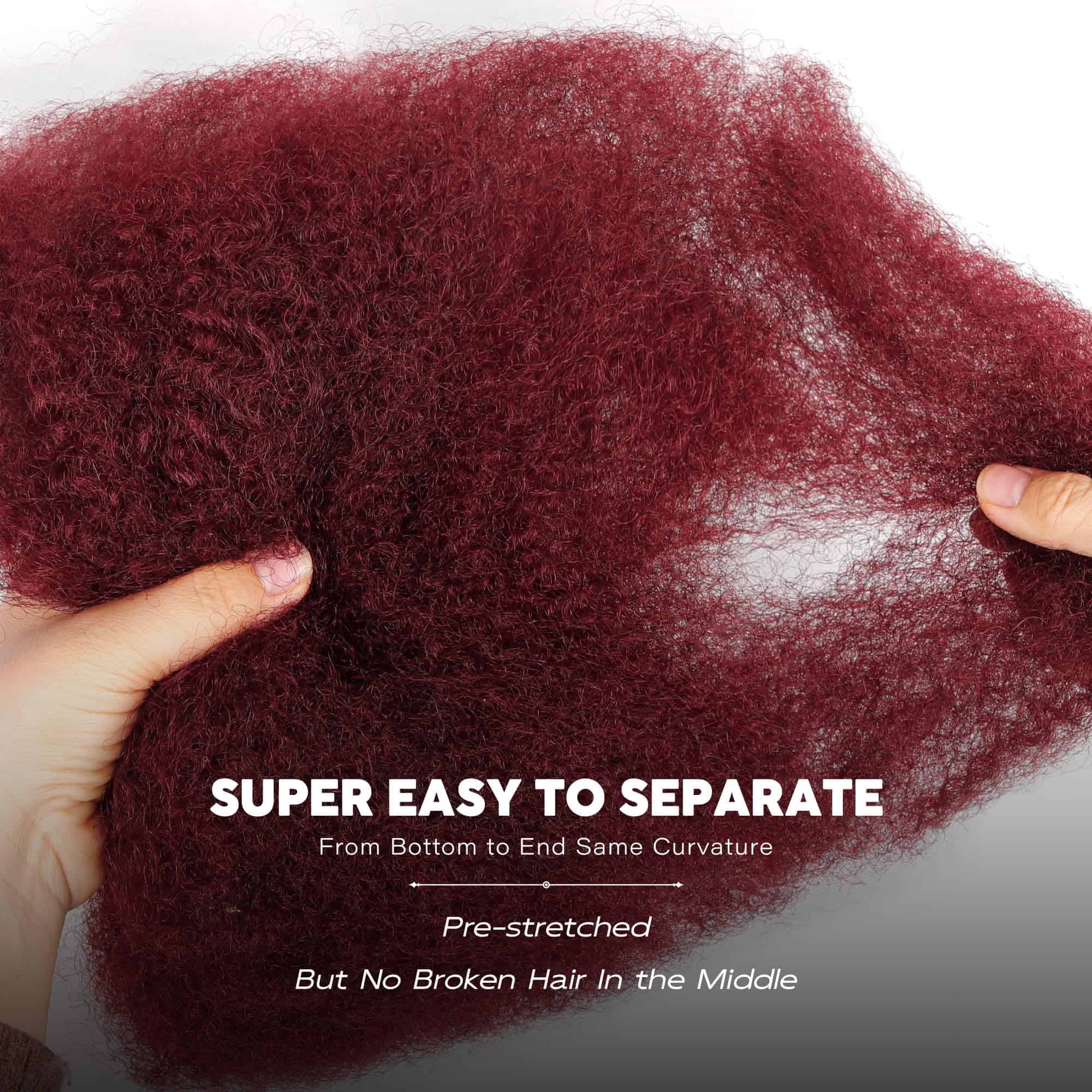 1. Material de Cabello Humano Afro Kinkys: Nuestro Cabello a Granel Afro Kinky Boasts cuenta con un diseño ligero que imita la sensación de tu propio cabello. Es 100% cabello humano, el cabello a granel Afro Kinky puede ser teñido, decolorado o estilizado como tu propio cabello. Esto permite la personalización de los mini twists.