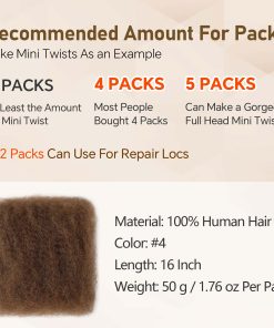 3.LONGEVIDAD- Con el cuidado adecuado, el cabello Afro Kinky Bulk puede durar varios meses en estilos de mini trenzas antes de necesitar ser renovado.