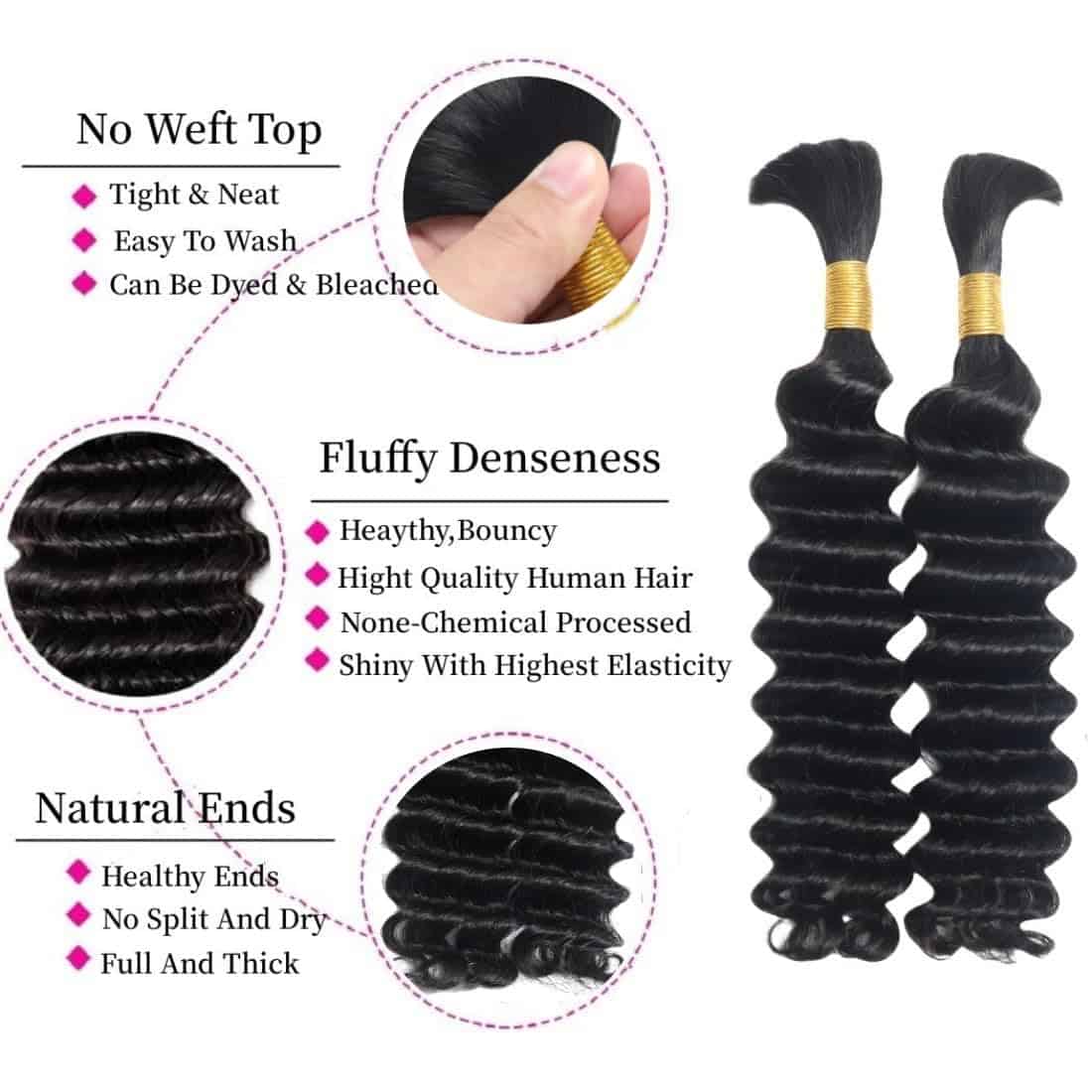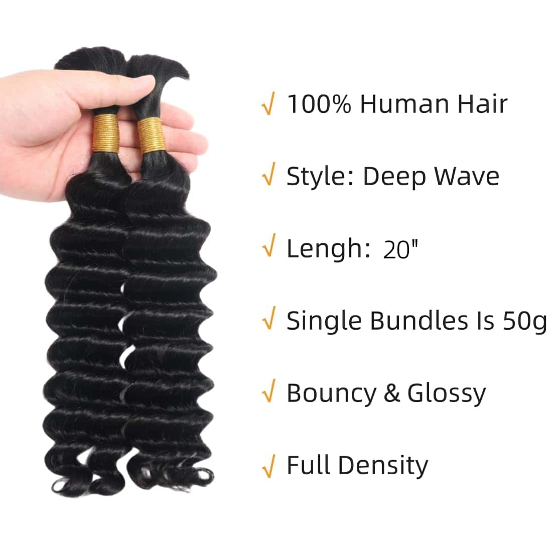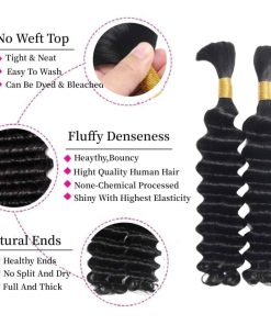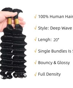 1. Cabello Humano suelto Profundo Wave 20 Pulgadas Para Trenzar Material del Cabello: Cabello Humano Brasileño, Absolutamente Limpio, Saludable, Natural, Sin Procesamiento Químico.