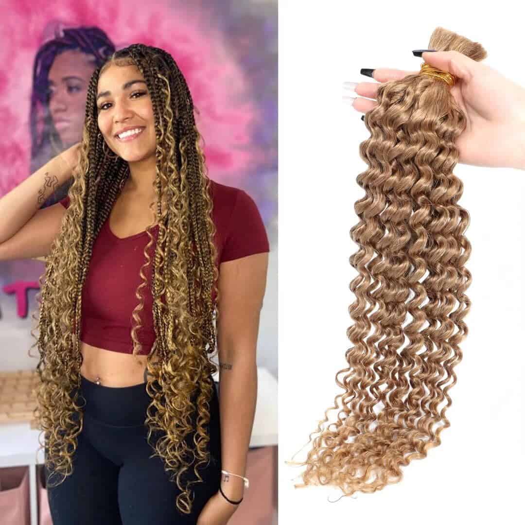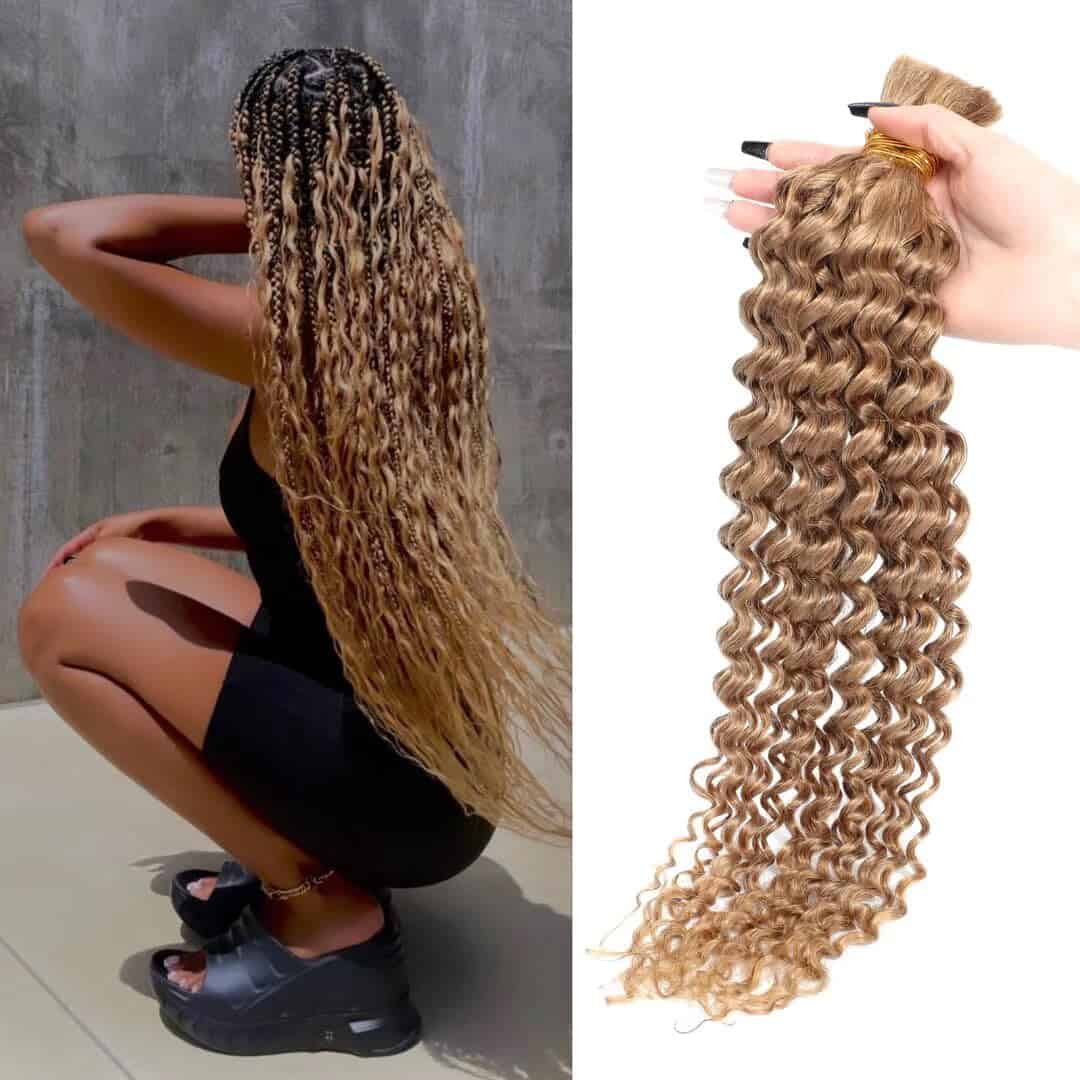 3. Cabello en granel de alta calidad para trenzar mojado y ondulado: este cabello humano para trenzar en micro es cómodo, ligero y está diseñado para llevar todo el día. Las extensiones no tirarán ni jalarán de tu cabello natural.