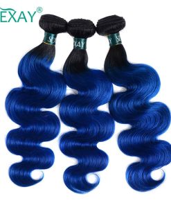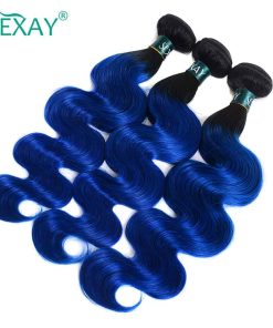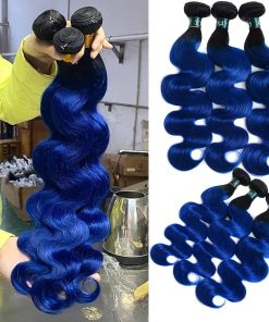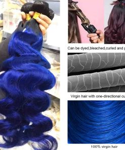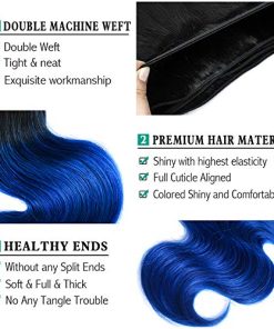 Cabello Ombre 1B/Azul Brasileño Onda Corporal 1 Paquete Oferta Pre-Coloreada Cabello Remy Humano Tejido 2 Tonos Ombre Cabello 10A Paquetes de Cabello Humano Virgen (18″, Onda Corporal 1B/Azul)