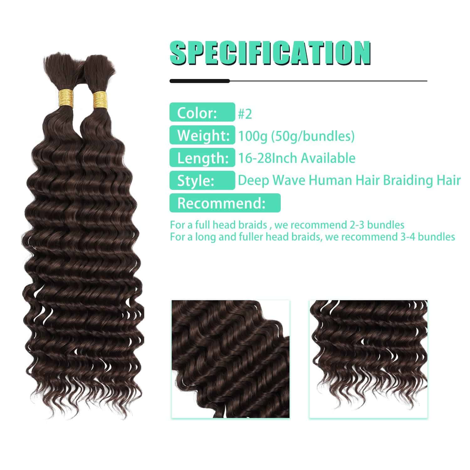 2. Longitud y Color del Cabello para Trenzar: Cabello para trenzar ondulado profundo con una amplia gama de colores (1B/2/4/27/30/350/4-27/99J/613), longitudes (16-28 pulgadas) disponibles, puedes elegir la combinación perfecta para tus preferencias y lograr el look deseado.