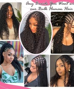 4. Cabello Boho para Trenzar: Nuestro Cabello Rizado Humano para Trenzas Boho, Sin Trama, Puede Hacer Varios Estilos con estos Paquetes de Ondas Profundas de Cabello Humano, como Trenzas Bohemias, Trenzas Sin Nudos, Trenzas de Caja, Trenzas de Espiga, etc. Adecuado para el Uso Diario, Bodas, Citas, Ceremonias de Graduación, Vacaciones, Fiestas, Regalos, etc., el Cabello para Trenzar Humano Mojado y Ondulado Puede Ayudarte a Desatar tu Glamour y Hacerte el Centro de Atención.