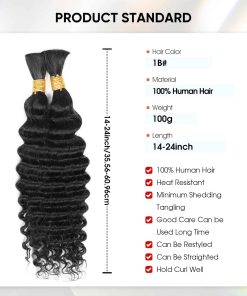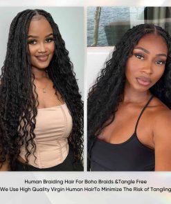 El cabello para trenzar humano de onda profunda de boho está hecho de cabello humano virgen brasileño sin procesar, suave, liso y fácil de manejar. Cada paquete contiene 2 paquetes de cabello, con un peso total de 100g. Si prefieres trenzas completas, te recomendamos que compres 3-4 paquetes. Nuestro cabello para trenzar onda profunda es la extensión de cabello más adecuada para trenzar, ya que no tiene trama y no se requieren habilidades profesionales para completar estilos trenzados. Puedes crear diversos estilos de trenzado como trenzas bohemias, trenzas sin nudos, trenzas de caja, trenzas pegadas al cuero cabelludo y giros. También puedes usarlo para crear extensiones de cabello que añadan longitud y volumen a tu cabello natural. Ofrecemos cabello para trenzar humano en una variedad de colores y longitudes para que elijas y satisfagas las necesidades de diferentes ocasiones y estilos.