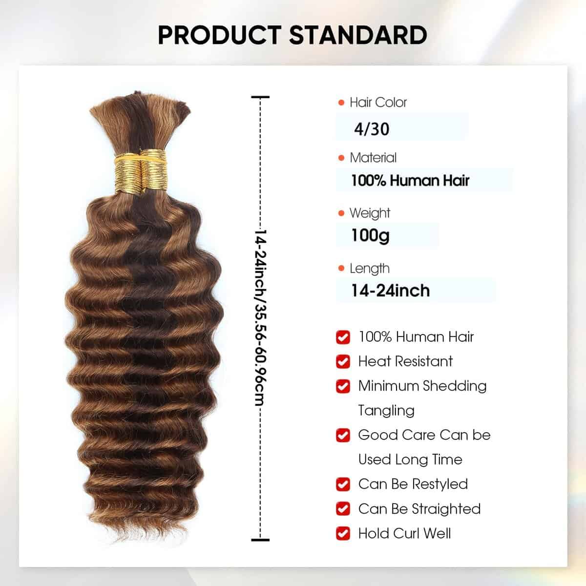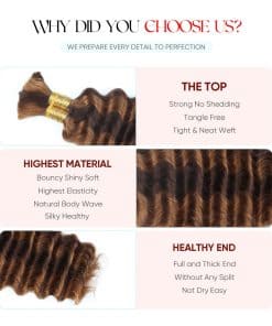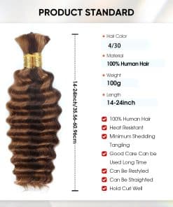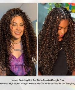 1. Material de Cabello Trenzado Humano: Las trenzas boho de cabello humano están hechas de cabello humano virgen brasileño 100% sin procesar, suave, liso y fácil de manejar. 2. Especificaciones de las Extensiones de Cabello Humano: Cada juego de cabello trenzado húmedo y ondulado contiene 2 paquetes, con un peso total de 100g. Si te gustan las trenzas completas, te recomendamos que compres 3-4 paquetes. 3. Fácil de Usar: Nuestro cabello trenzado humano ondulado es la extensión de cabello más adecuada para trenzar, no tiene trama. No se requieren habilidades profesionales para completar estilos trenzados complejos. 4. Estilos de Trenzado Versátiles: Como trenzas bohemias, trenzas sin nudos, trenzas de caja, trenzas africanas y giros. También puedes usarlo para crear extensiones de cabello que agreguen longitud y volumen a tu cabello natural. 5. Variedad de opciones: Ofrecemos Cabello Trenzado Humano en una variedad de colores y longitudes para que puedas elegir y satisfacer las necesidades de diferentes ocasiones y estilos.