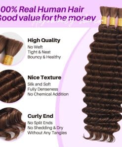 ¡Logra el look boho perfecto con este cabello trenzado humano! Ideal para trenzas boho, este cabello de onda profunda te brinda un aspecto rizado y desenfadado. Con un peso de 110g y una longitud de 18 pulgadas, este cabello de color Marrón Chocolate es perfecto para crear trenzas rizadas sin nudos de estilo bohemio oceánico. Cada paquete incluye 3 paquetes sin trama para una fácil aplicación. Eleva tu estilo con este cabello trenzado de calidad.