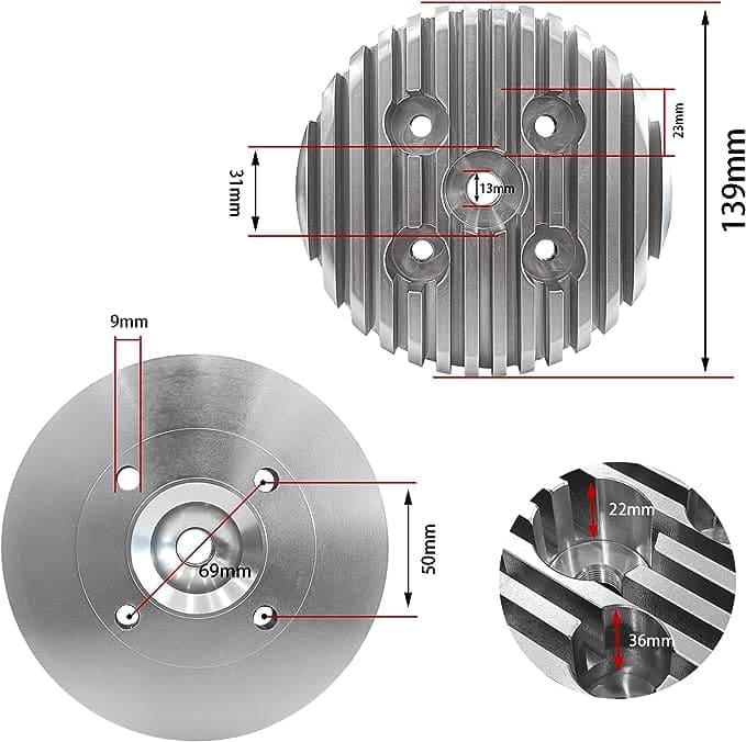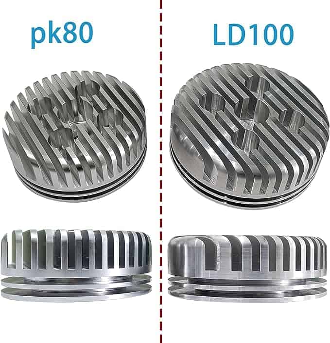 Cabeza de cilindro CDHPOWER LD100, Cabeza de carreras de alto rendimiento para LD100-100cc/YD85 de 2 tiempos. Totalmente fabricada en CNC, con un diseño de aluminio. La cabeza de cilindro de carreras aumenta la potencia y enfría en gran medida el cilindro de 2 tiempos LD100. Esto resulta en un mejor rendimiento y una vida útil más larga para el LD100/79cc/80cc de 2 tiempos. Con 6cc adicionales de capacidad, esta cabeza de cilindro garantiza un mejor desempeño y durabilidad para su motor LD100.