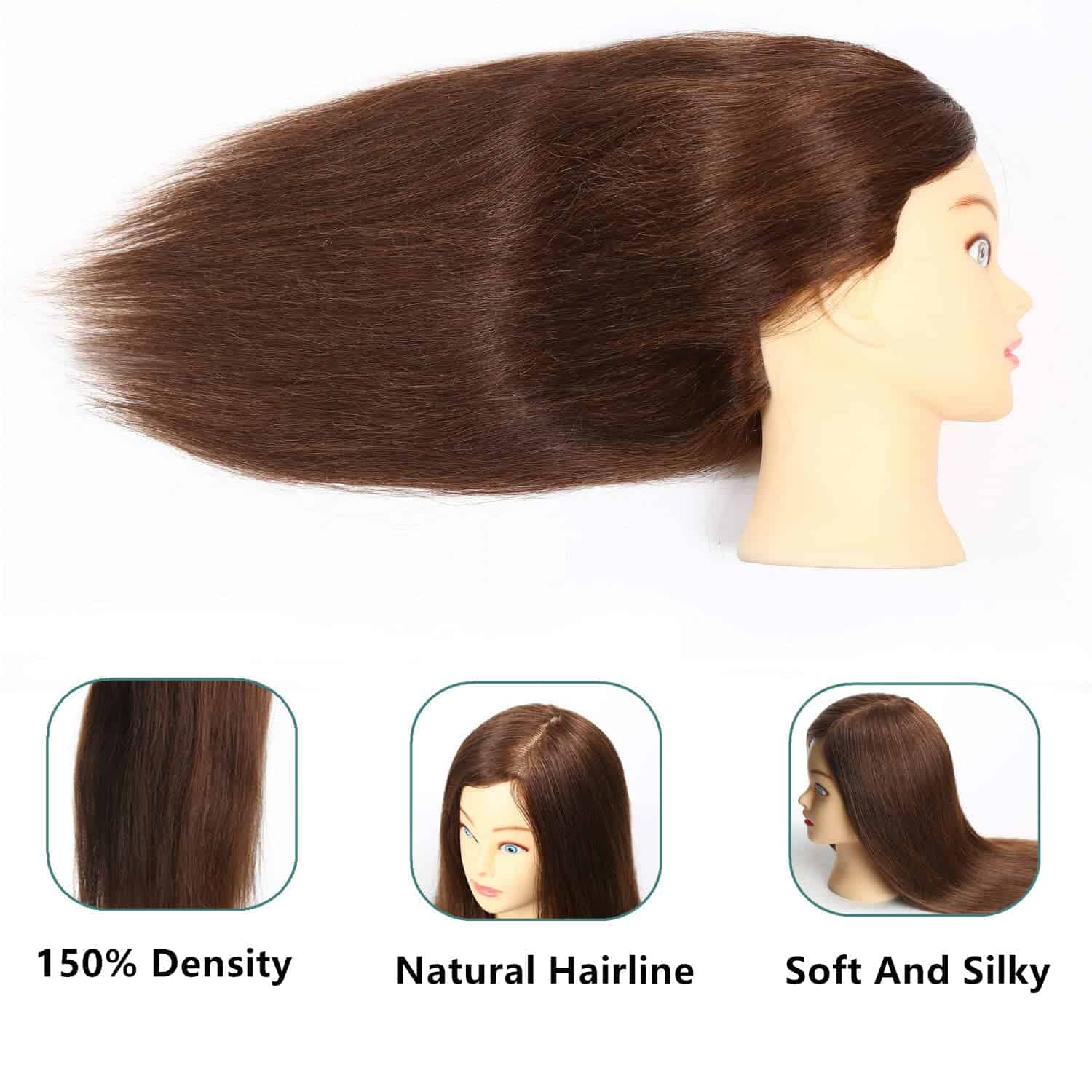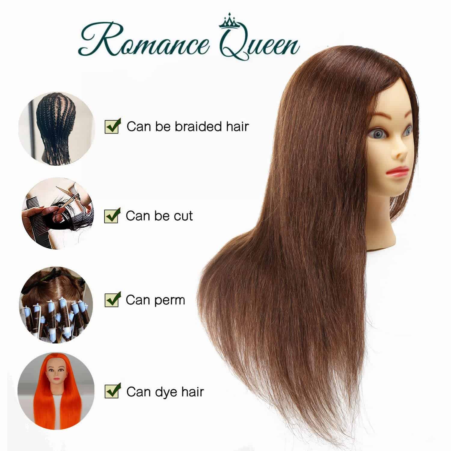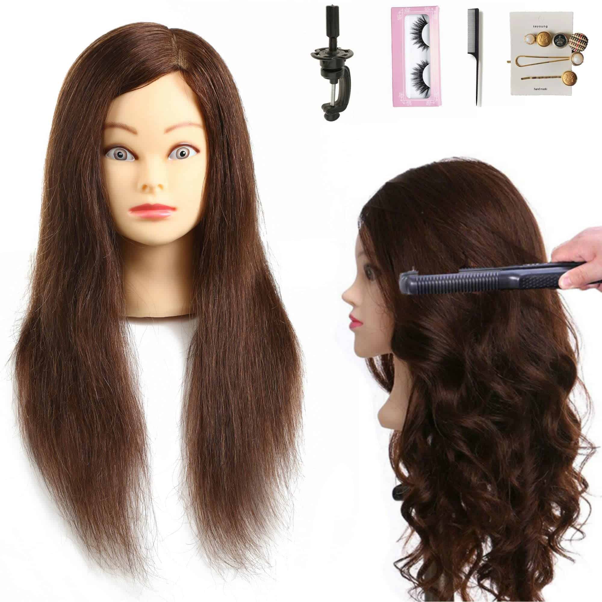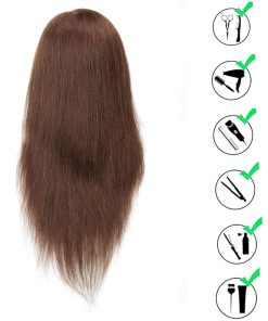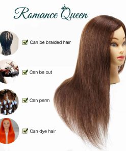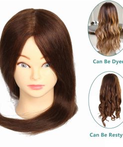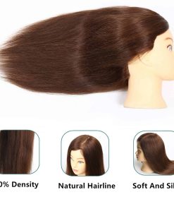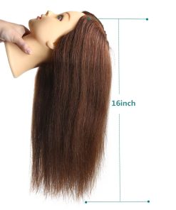 Material: cabeza de maniquí femenina con cabello 100% humano. Longitud del cabello: la longitud desde la frente hasta el final del cabello en la parte trasera: la longitud promedio de un solo cabello es de 16 pulgadas.