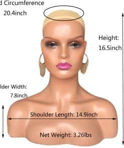 Gracias por comprar en la tienda de Voloria, nuestro objetivo es brindarle el mejor producto y servicio de calidad, si tiene algún problema simplemente venga a nosotros libremente, ¡siempre estará satisfecho! Especificaciones: Material: Material de resina de polipropileno, plástico de protección ambiental, fuerte, resistente e irrompible Tamaño de la circunferencia de la cabeza: 20.4 pulgadas Altura de la cabeza: 16.5 pulgadas Ancho de los hombros: 7.8 pulgadas Longitud de los hombros: 14.9 pulgadas Peso neto: 3.26 libras 1. Tiene una gorra de red antideslizante adjunta, lo que facilita y simplifica ajustar la peluca. 2. Esta cabeza de maniquí tiene un maquillaje sensacional y un tono de piel que no parece artificial. 3. Maquillaje natural y tamaño adulto, gran exhibición para pelucas, gafas de sol, sombreros, joyas y bufandas. 4. Maquillaje: maquillaje realista a tamaño natural, con gorra de red, pestañas, agujero en la oreja. 5. Tiene agujero en la oreja y puede usar todo tipo de aretes. 6. También es práctico tanto para peluqueros profesionales como para estudiantes que necesitan entrenamiento en belleza o práctica. Nota: 1. El collar y la peluca se utilizan para mostrar, solo se vende la cabeza de maniquí. 2. Hemos protegido bien la nariz, pero debido al transporte violento de la logística. Si la nariz se deforma en tránsito, por favor use un secador de pelo. Cuando se caliente se volverá suave, amasar la nariz hacia la izquierda y hacia la derecha. Debería poder volver a su forma original. Si aún no puede resolver este problema, por favor contáctenos, lo ayudaremos hasta que todos sus problemas estén resueltos, gracias