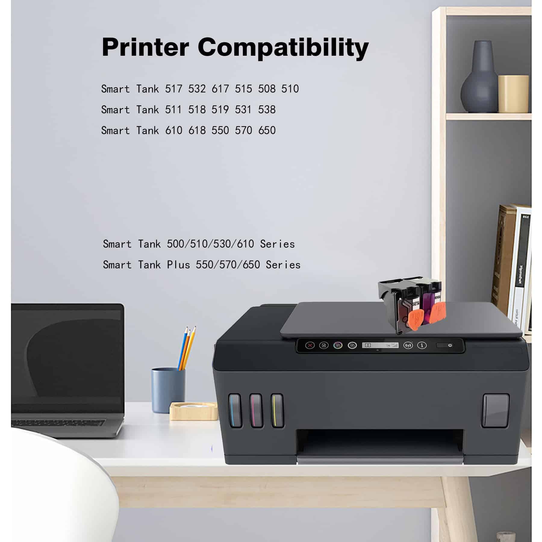 YNKHUI Cabezal de impresión GT53 X4E75A M0H50AA, dedicado a la impresión de alta calidad. Paquete incluido: 2 cabezales de impresión negros X4E75A y tricolor M0H50A. Compatible con: Compatible con Smart Tank 510, 511, 514, 515, 516, 517, 518, 519, 530, 531, 532, 533, 538, 615, 617 y todas en uno 500 y 508. Compatible con Smart Tank Plus 551, 555, 559, 570, 571, 651 y todo en uno inalámbrico 618 655.