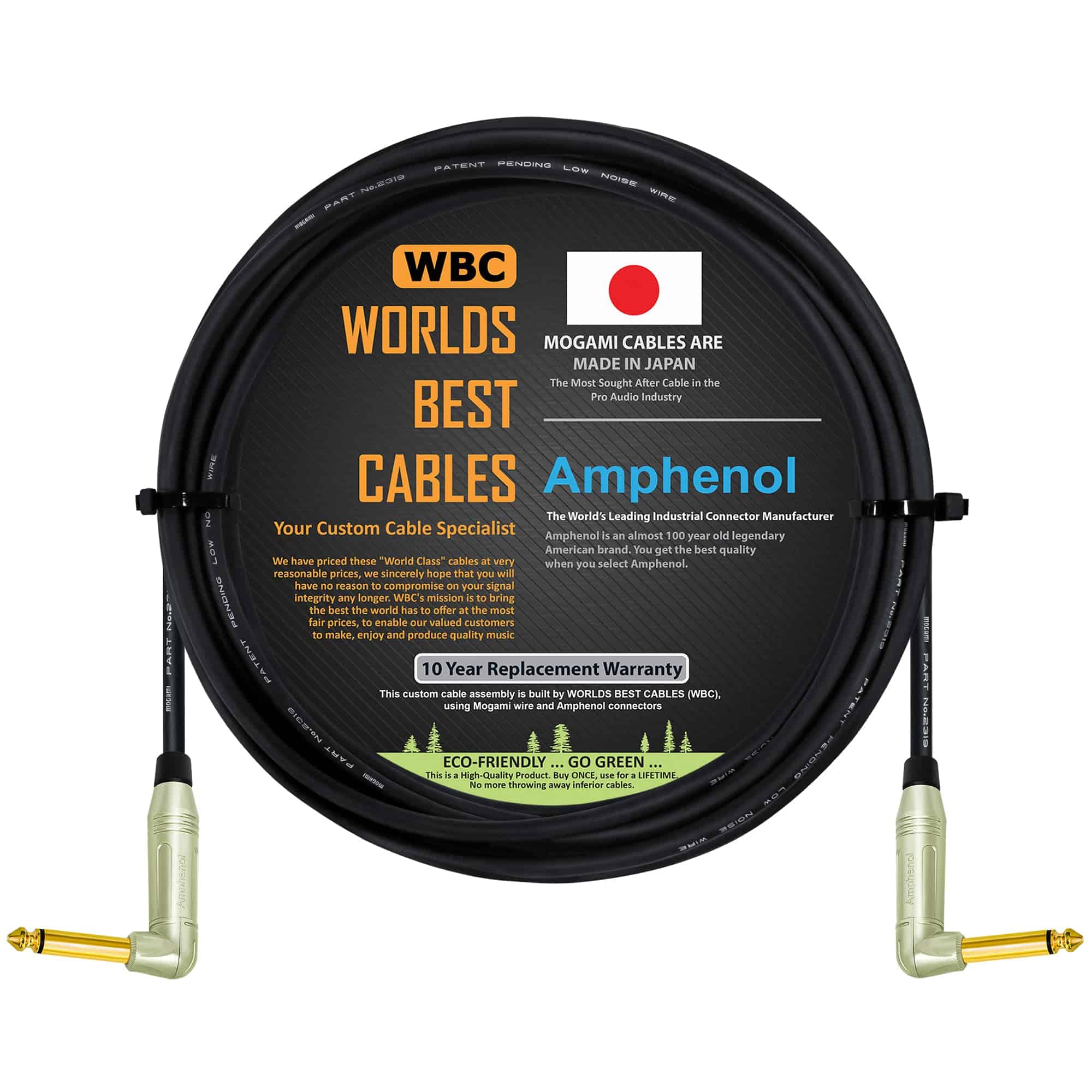 Este es un ensamblaje de cable hecho a medida por WORLDS BEST CABLES (WBC), utilizando cable Mogami 2319 y conectores Amphenol M-Series ACPM-RN-AU. WBC siempre ofrece ensamblajes de cable de clase mundial utilizando cables y conectores líderes en el mercado. La longitud del cable se mide de punta a punta de cada conector (los detalles de la medición se muestran claramente en una de las imágenes de la galería).