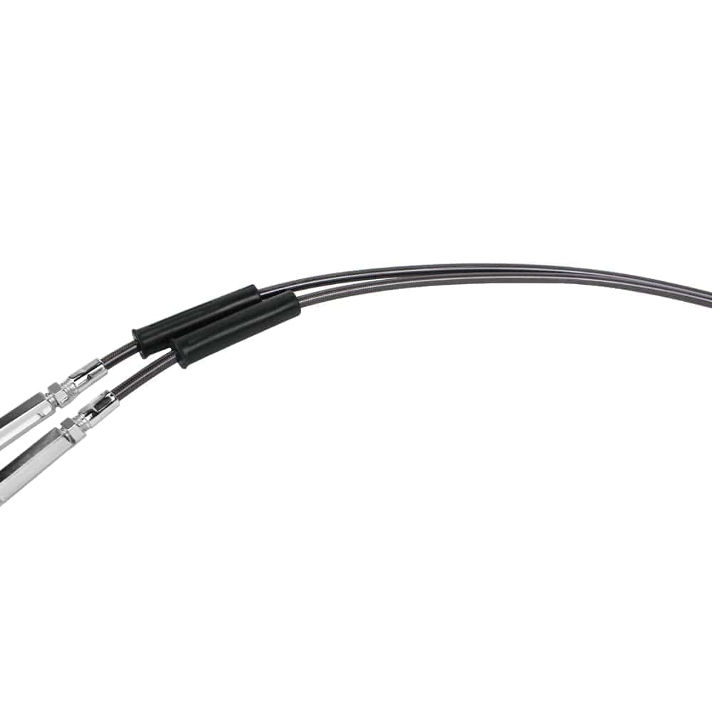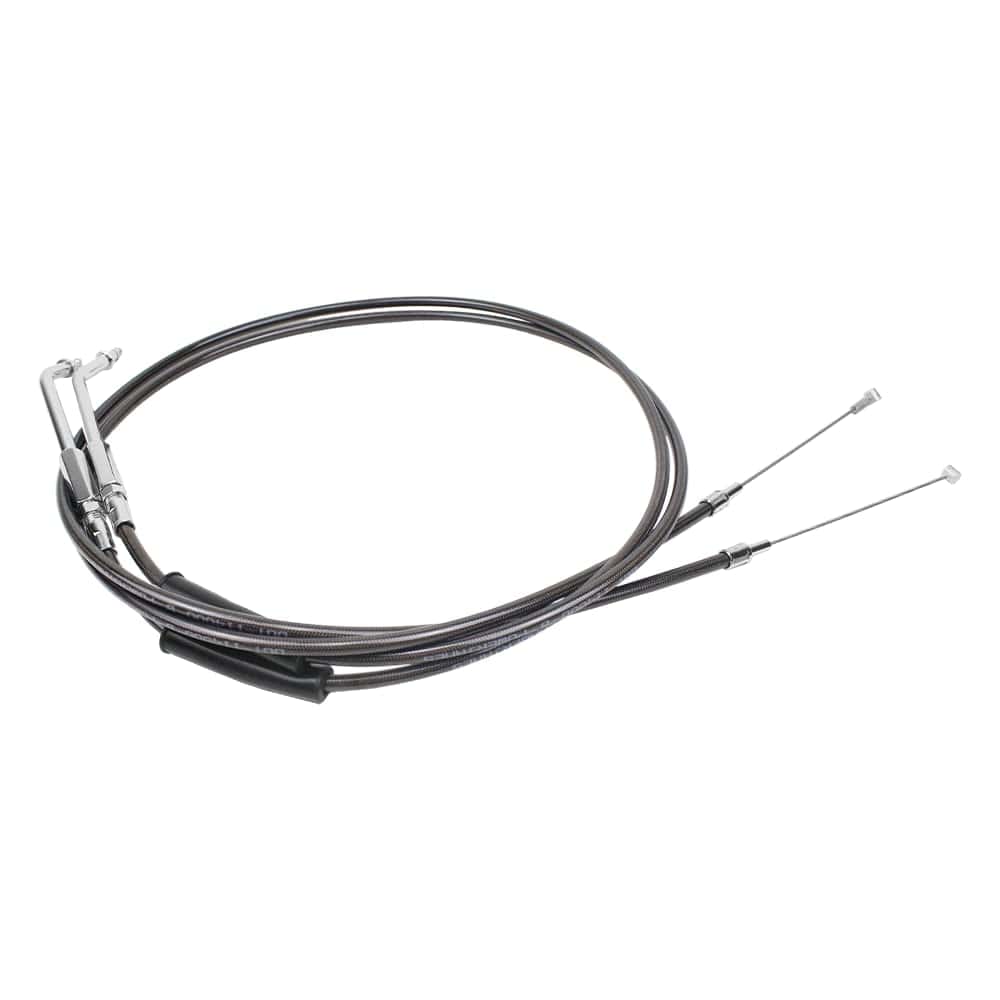 Hecho de metal de alta calidad, trenzado en acero inoxidable, más suave y flexible. Este cable de acelerador de ralentí de alta calidad está recubierto con una capa de piel de plástico transparente PC negro ahumado, lo que le confiere una apariencia elegante y única. Se venden en pares para mayor conveniencia. Personaliza tu motocicleta con este hermoso y duradero cable de acelerador.