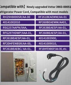 2. Compatible con el cable de alimentación para refrigerador 3903-000519 de Vsttar recién actualizado, compatible con la mayoría de los modelos RH29H8000SR/AA-00, RF261BEAEWW/AA-01, 40141002010, RF260BEAEWW/AA-01, RSG257AAPN/XAA, RF263BEAESP/AA-01, RFG297HDWP/XAA-01, RF260BEAESP/AA-01, RF261BEAESP/AA-01, 40141003900, RF20HFENBSR/AA-00, 40141009010, RF261BEAEBC/AA-01, RSG257AAWP/XAA, RF18HFENBSP/AA-00, RF263BEAEBC/AA-01, 40141003110, RF4287HABP/XAA-00, RF4287HABP/XAA-01, 40141002900, RF263TEAESP/AA-00, RSG257AARS/XAA-00, RF263BEAESR/AA-00, RFG298HDWP/XAA-01, RF20HFENBSP/AA-00, RH22H9010SR/AA-00, RF261BEAESR/AA-01, etc.