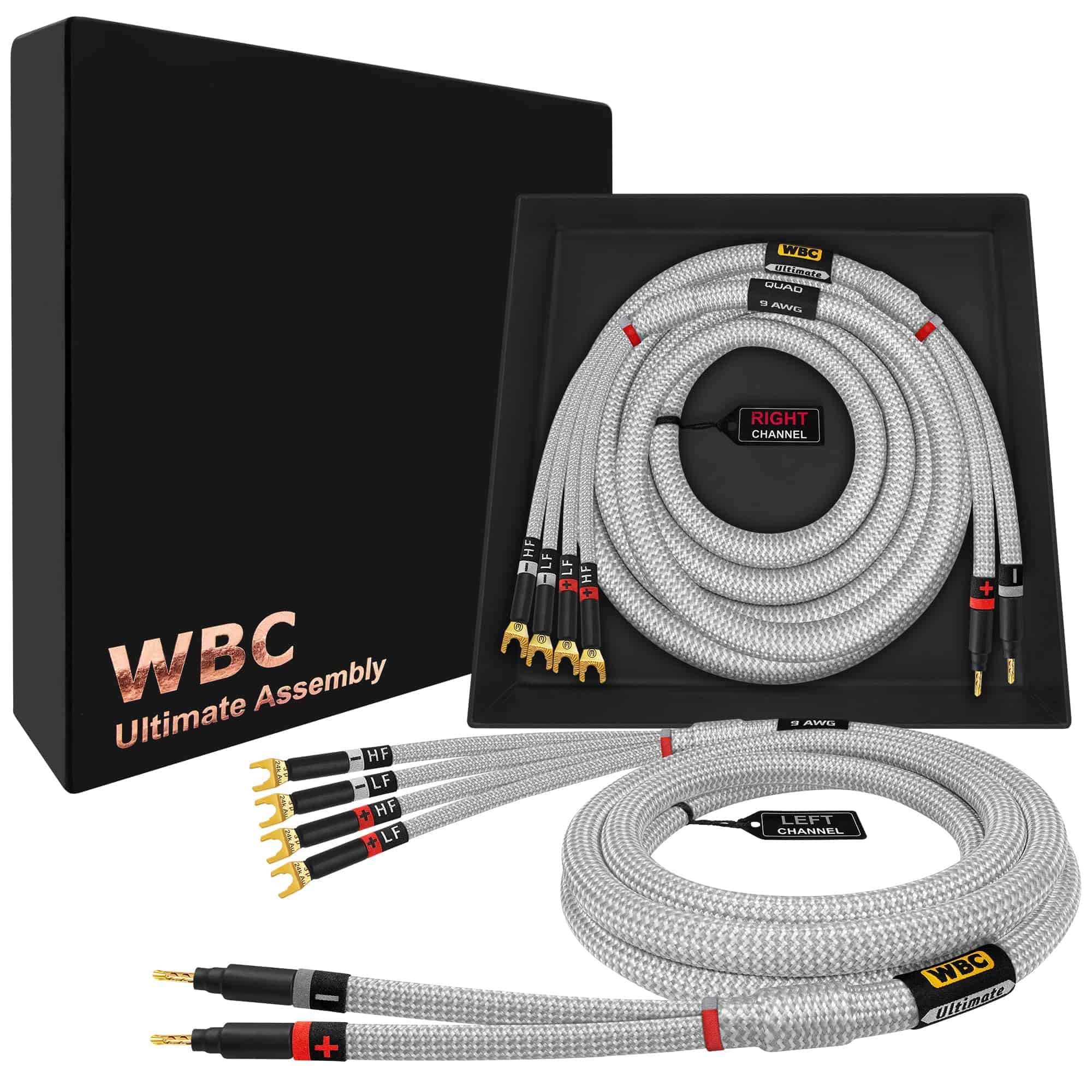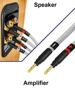 El Cable de Altavoz Bi-cable de Alta Fidelidad Premium de WORLDS BEST CABLES es el resultado directo de la demanda popular de nuestros valiosos clientes, llevando nuestras excelentes soluciones de cable un paso más allá. Este cable de calibre pesado, con 2688 hilos ultrafinos de cobre 99.99% ultra puro, entregará sin esfuerzo graves más profundos, medios dulces y agudos más altos sin temor a la pérdida de señal. Cumple con todos los requisitos más estrictos del audiófilo más exigente. Con el Cable de Altavoz Bi-cable de Alta Fidelidad Premium de WORLDS BEST CABLES, experimentará lo mejor que WBC tiene para ofrecer mientras disfruta de la apariencia estéticamente agradable que traerán estas lujosas montajes a su sistema. El empaque de alta calidad convierte a estos cables en un excelente regalo para cualquier audiófilo o amante de la música que apreciará el cableado de audio de alta calidad hecho a mano. La chaqueta de tweed trenzada y la etiqueta bordada complementarán de manera muy elegante su equipo de alta gama; este es verdaderamente el cable de altavoz definitivo. En WBC solo utilizamos conectores de la más alta calidad para estas montajes de cableado para audiófilos. Los conectores de banana de 3 micrones de Eminence, bañados en oro de 24K, grado audiófilo, de 4 mm (diámetro estándar) con un cuerpo completamente aislado para prevenir cortocircuitos accidentales y conectores de espiga múltiples (compatibles con bornes de 8mm y 6mm), proporcionan una resistencia superior a la abrasión y la corrosión y un rendimiento incomparable. Los enchufes de banana y espiga están especialmente reforzados para soportar cables de calibre pesado (eje especial y perfil más grueso). Todos nuestros cables personalizados están soldados profesionalmente utilizando nuestra exclusiva mezcla de soldadura de plata 4% de WORLDS BEST CABLES y un proceso de soldadura asistido por nitrógeno único en nosotros, superando los estándares de la industria, mejora la integridad de las uniones de soldadura sobre los métodos tradicionales. La chaqueta de tweed se aplica a mano mientras que la etiqueta bordada también se cose a mano en su lugar, resultando en un cable verdaderamente hecho a mano. Las cuatro fundas de tela para conectores y la caja de regalo son reutilizables. Esta venta es para un par de cables de altavoz bi-cable, un cable para cada canal izquierdo y derecho. Cada cable de altavoz mide 6 pies de largo. Estos son cables a medida ensamblados con amor por WORLDS BEST CABLES, ofrecemos la mayor variedad de cables a medida en el mercado, tenemos todas las principales marcas de cables y conectores. Hemos servido a millones de clientes con ensamblajes de calidad durante muchos años y la amplia experiencia recopilada se vierte en el WBC Ultimate Assembly Range de cables.