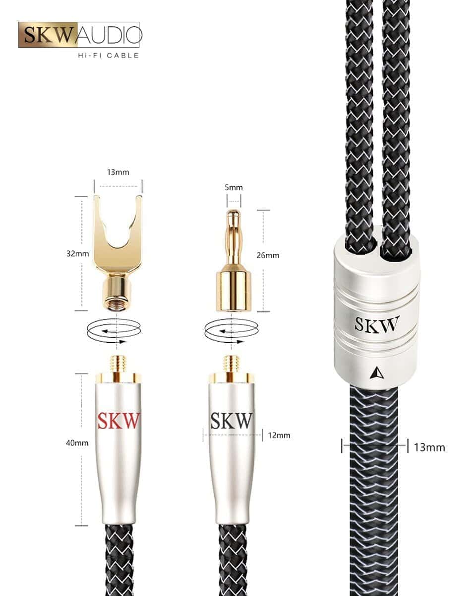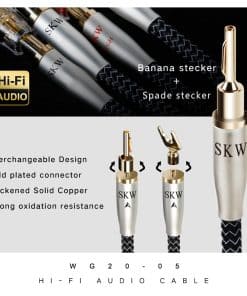 1. Cable de altavoz SKW: Hecho de cobre y plata de ultra alta pureza que tiene una conductividad eléctrica extremadamente alta.