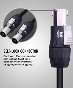 El conector de auto-bloqueo personalizado de Monster garantiza una conexión segura, incluso en situaciones de uso intensivo.