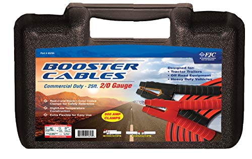 Cable de arranque FJC de 1 calibre y 25 pies con abrazadera de 800 amperios de uso comercial. Ideal para situaciones de emergencia y para asegurar un arranque eficiente del vehículo. Conectores robustos que garantizan una transferencia de energía segura y confiable. Hecho con materiales duraderos y de alta calidad para un rendimiento óptimo.