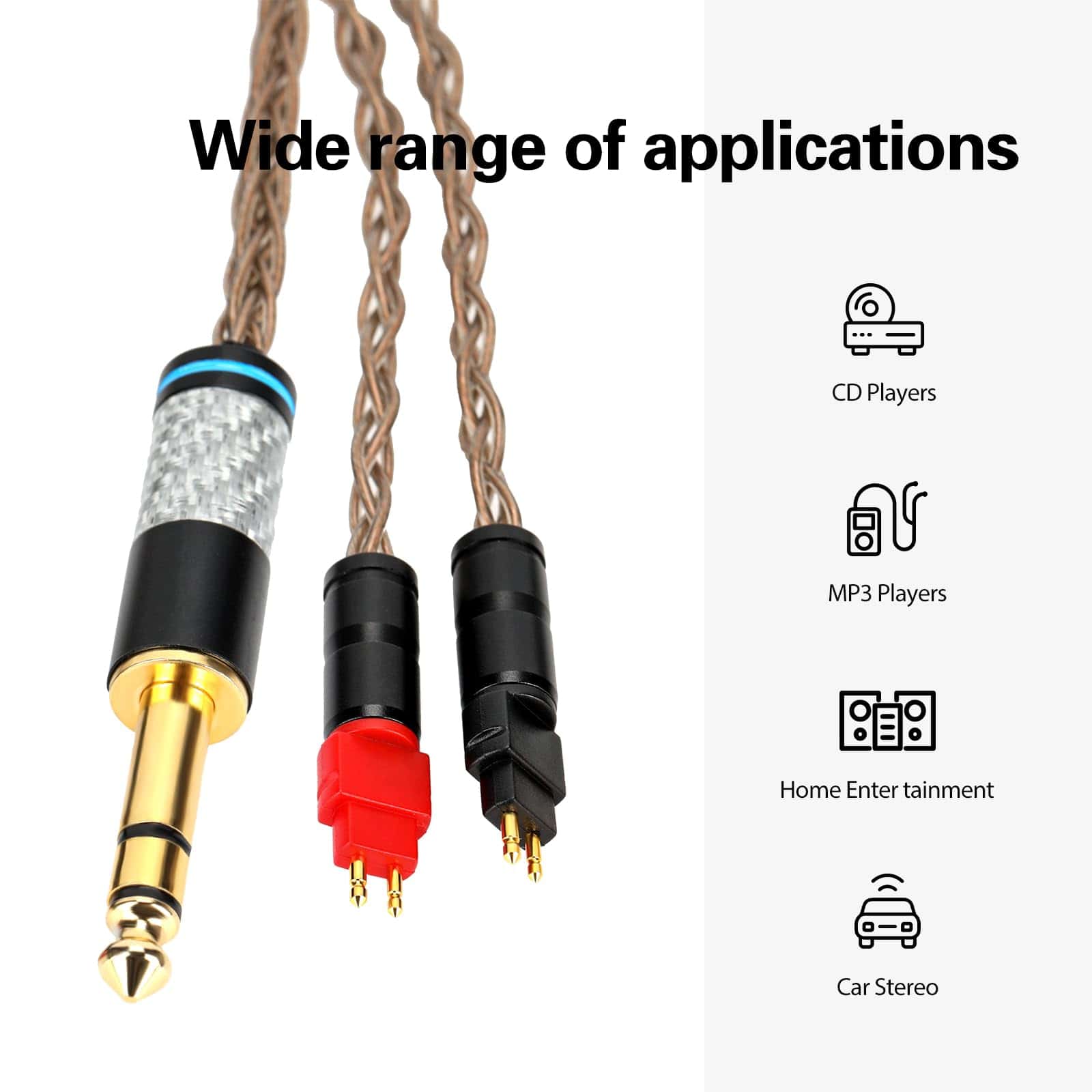 Total Length: 2M(6.5ft) High Quality 6N OFC Wire. Replacement Audio upgrade Cable For HD650 HD600 HD580 HD525 HD565 Headphone etc. The pin has «+-» mark side facing outward. The black pin is for left channel, the red pin is for right channel. High Quality Cable Each cable is hand made by professionals. Top quality and made by environment-friendly material.Simple packaging.