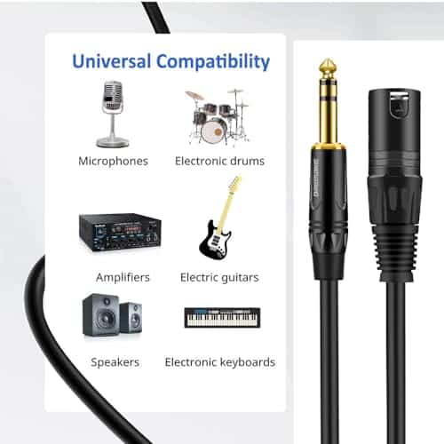 5. APLICACIONES: Utilice un micrófono de alta calidad para conectar a una mesa de mezclas o amplificador de guitarra. Funciona con algunos dispositivos con conector TRS de 6.35 mm a macho XLR, como micrófonos, consolas de sonido, amplificador de potencia, sistema estéreo y más