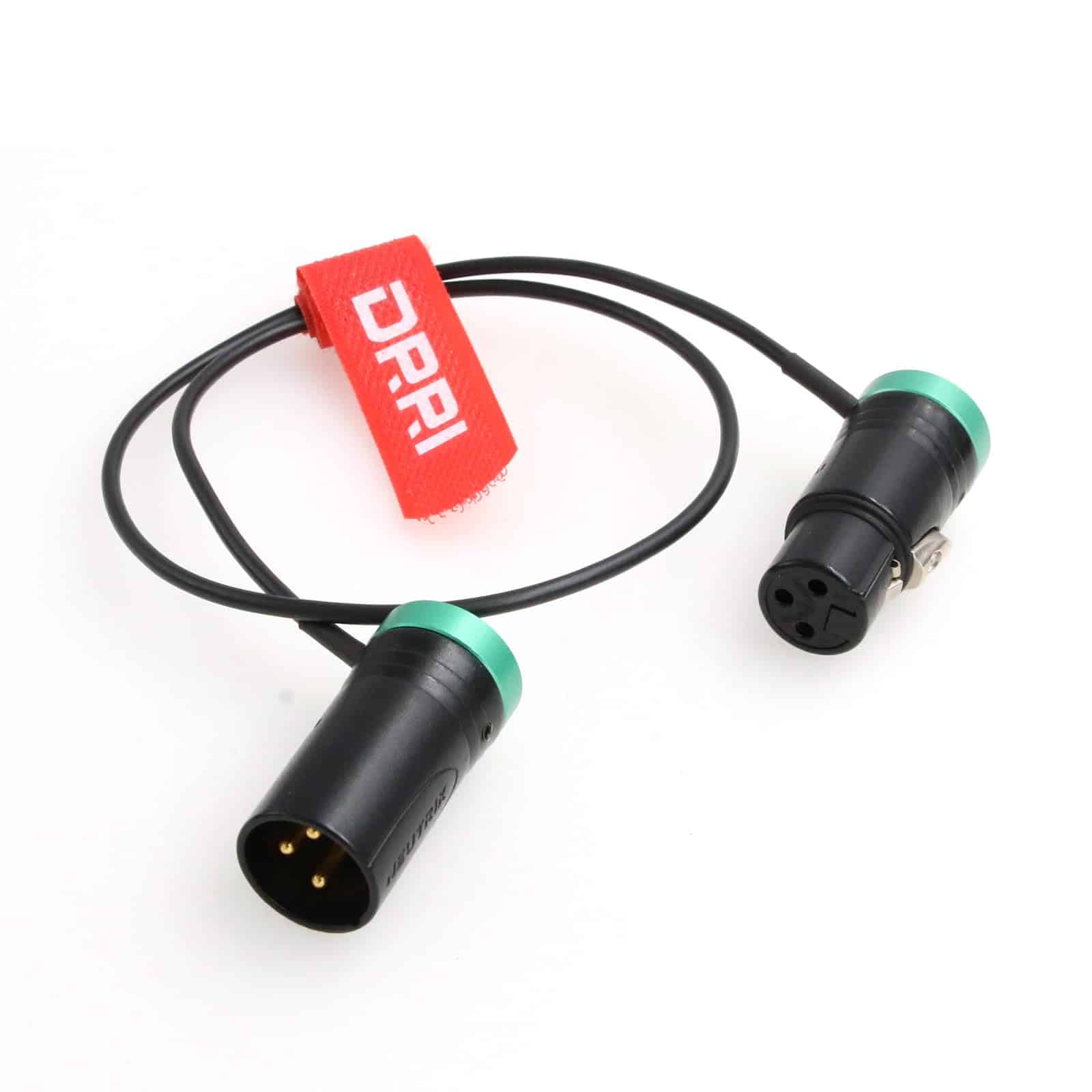 Conector A: metal NEUTRIK XLR 3pin hembra; Conector B: metal NEUTRIK XLR 3pin macho. Diseñado para conectar un micrófono de cañón en cámara a una cámara o equipo de audio de campo. Conector ajustable en ángulo para cambiar la orientación de la salida del cable cuando se necesite evitar obstáculos en la bolsa (puedes ajustar la salida del cable del XLR cómodamente de 30° a 150° y de 210° a 330°). Compatible con: Sound Devices 633, 688, 788T, 302, 552, Dispositivo Zaxcom, Sennheiser MKE 600 y radios Sony PWX-Z150, Lectrosonics 411. Longitud: 50 cm en stock (otras longitudes pueden ser personalizadas).