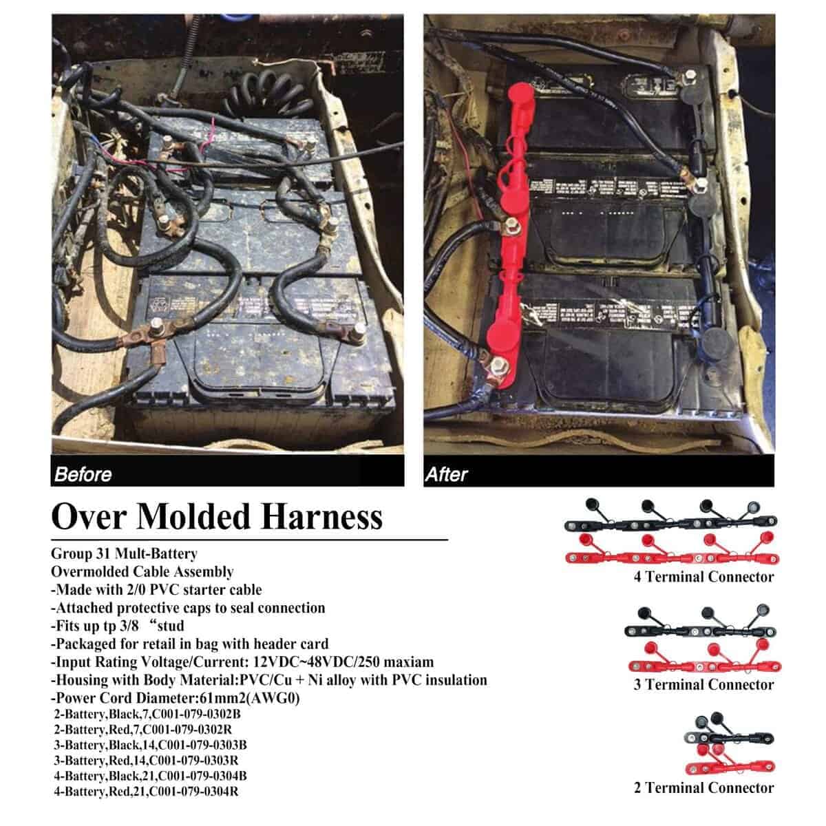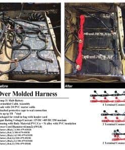Cable de batería multiposición Overmolded (positivo rojo) de sus partes para camiones, barcos, yates, autocaravanas, motores de baterías, remolques y autobuses. Diseñado para conexiones seguras de varias baterías en sistemas de potencia automotrices, marinos y de camiones / autobuses pesados, este cable ofrece una conexión confiable y segura para 2 terminales de batería. Con construcción duradera, está fabricado con cable de arranque de PVC de 2/0 y cuerpo de aleación de PVC/Cu+Ni con aislamiento para garantizar durabilidad y resistencia al desgaste en aplicaciones de alta potencia. Su clasificación de voltaje / corriente de entrada de 12VDC a 48VDC y corriente máxima de 250A lo hacen ideal para sistemas de alta potencia. Además, cuenta con una tapa protectora que sella la conexión y evita que la suciedad, la humedad y otros contaminantes afecten el rendimiento. Compacto y eficiente, su longitud de 253mm asegura un ajuste perfecto para espacios reducidos, siendo ideal para vehículos y sistemas que requieran un arnés de cableado corto y efectivo.