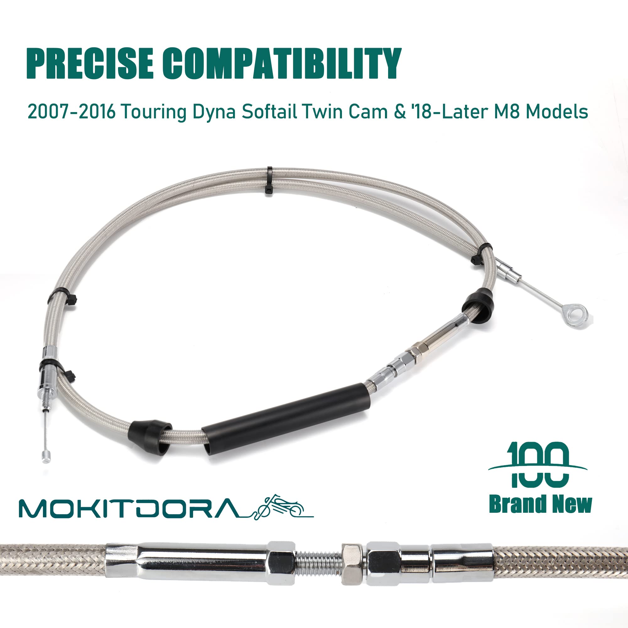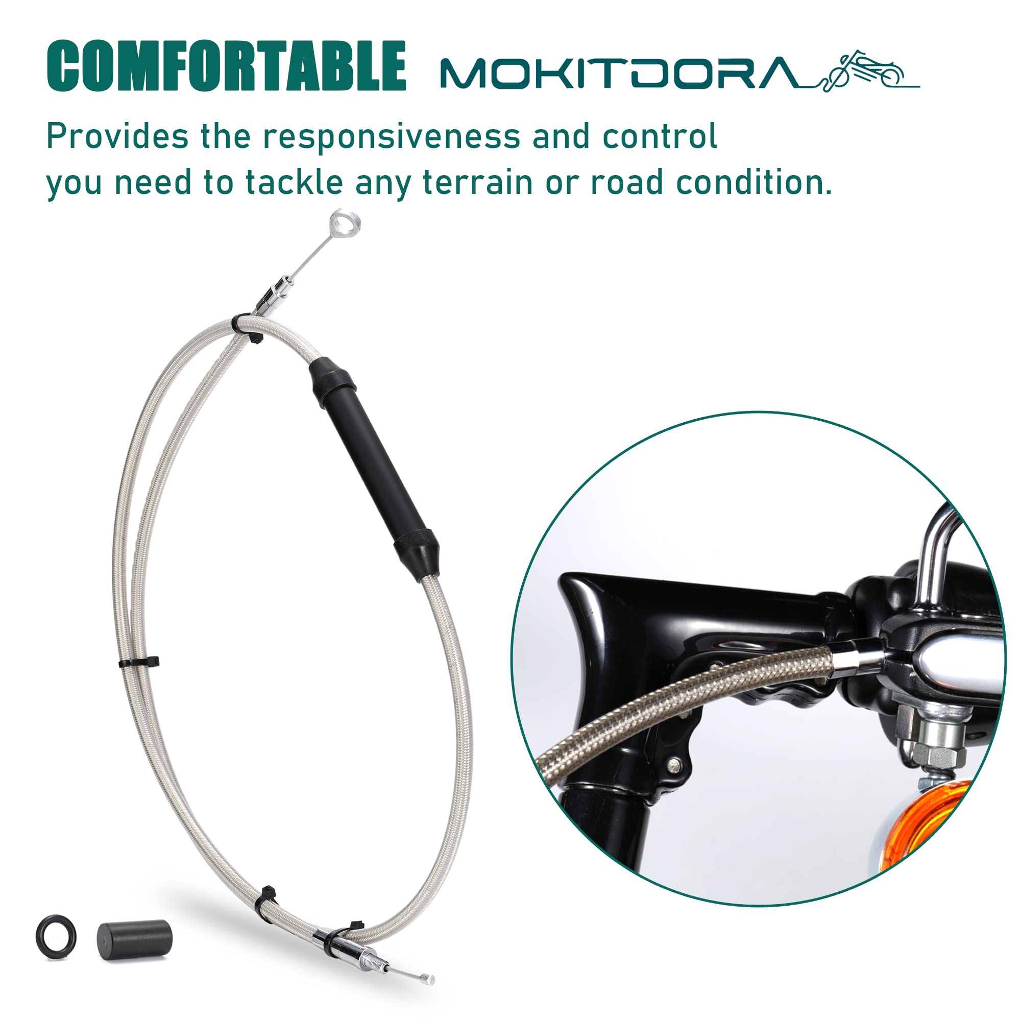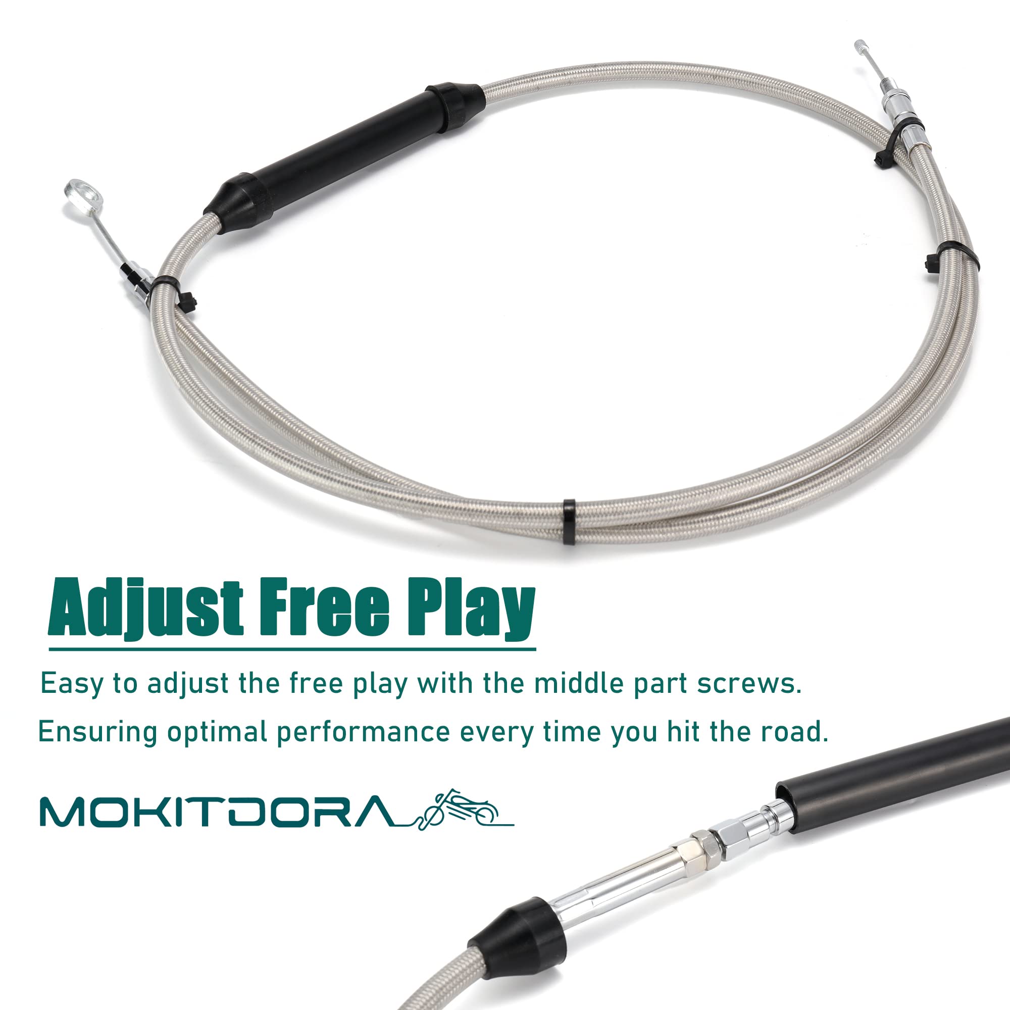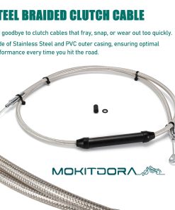 El cable de embrague de 64 15/16” de longitud de carcasa, ajustador de 28” y recorrido de 3.1” de MoKitDora es +2” más largo que el cable de stock de Harley para añadir manillares más altos o elevadores. Fabricado con acero inoxidable y cubierta exterior de PVC que brinda resistencia a la tracción. Con extremos cromados que garantizan un rendimiento duradero. Diseño de perno que facilita la instalación y los upgrades. Proporciona cambios de marchas suaves y precisos para mayor comodidad y control al conducir en diversas condiciones de camino. Resistente a la luz ultravioleta y al desvanecimiento. Acabado cromado sin rayones que añade estilo a tu motocicleta. Respaldado por la reputación de MoKitDora en la industria de motocicletas y probado para un rendimiento fiable que cumple con los estándares de la industria.