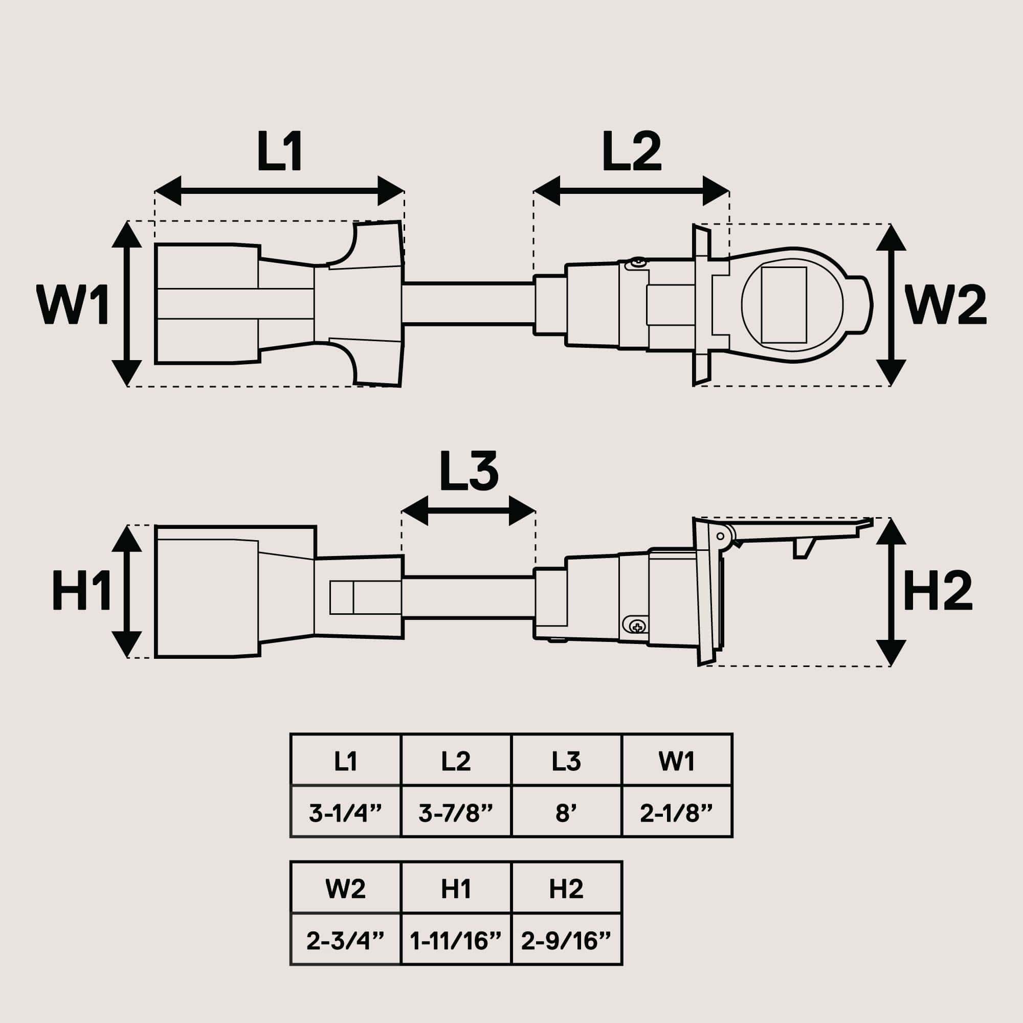 Cable de extensión de 8 pies y 7 pines para remolque True