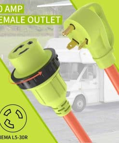 Cable de extensión de corriente para RV de 30 amperios que puede proporcionar energía desde el camping hasta su RV de 30 amperios, remolque o vehículo, con un cable de 25 pies para garantizar un suministro de energía a larga distancia para su RV. Certificado UL, hecho de cable interior de cobre resistente a la oxidación y al calor STW 10 3 AWG, con aislamiento duradero de PVC de 600 voltios, resistente al calor hasta 105 . Diseño de bloqueo de giro que garantiza que el enchufe se bloquee de forma segura al RV o a la caja de toma de corriente del hogar, evitando que el cable se deslice. No se ve afectado por huracanes, fuertes lluvias, nieve, etc. Fácil de usar, el enchufe con espacio de agarre puede enchufar y desenchufar el conector de forma segura y eficiente. Viene con un organizador de cables ajustable para un almacenamiento fácil en su RV o garaje.