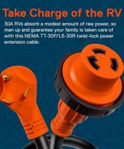 1. ¡TOMA EL CONTROL DEL RV – Los RV de 30A absorben una cantidad modesta de energía cruda, así que asegúrate y garantiza que tu familia esté bien cuidada con este cable de extensión de energía con bloqueo de torsión NEMA TT-30P/L5-30R.