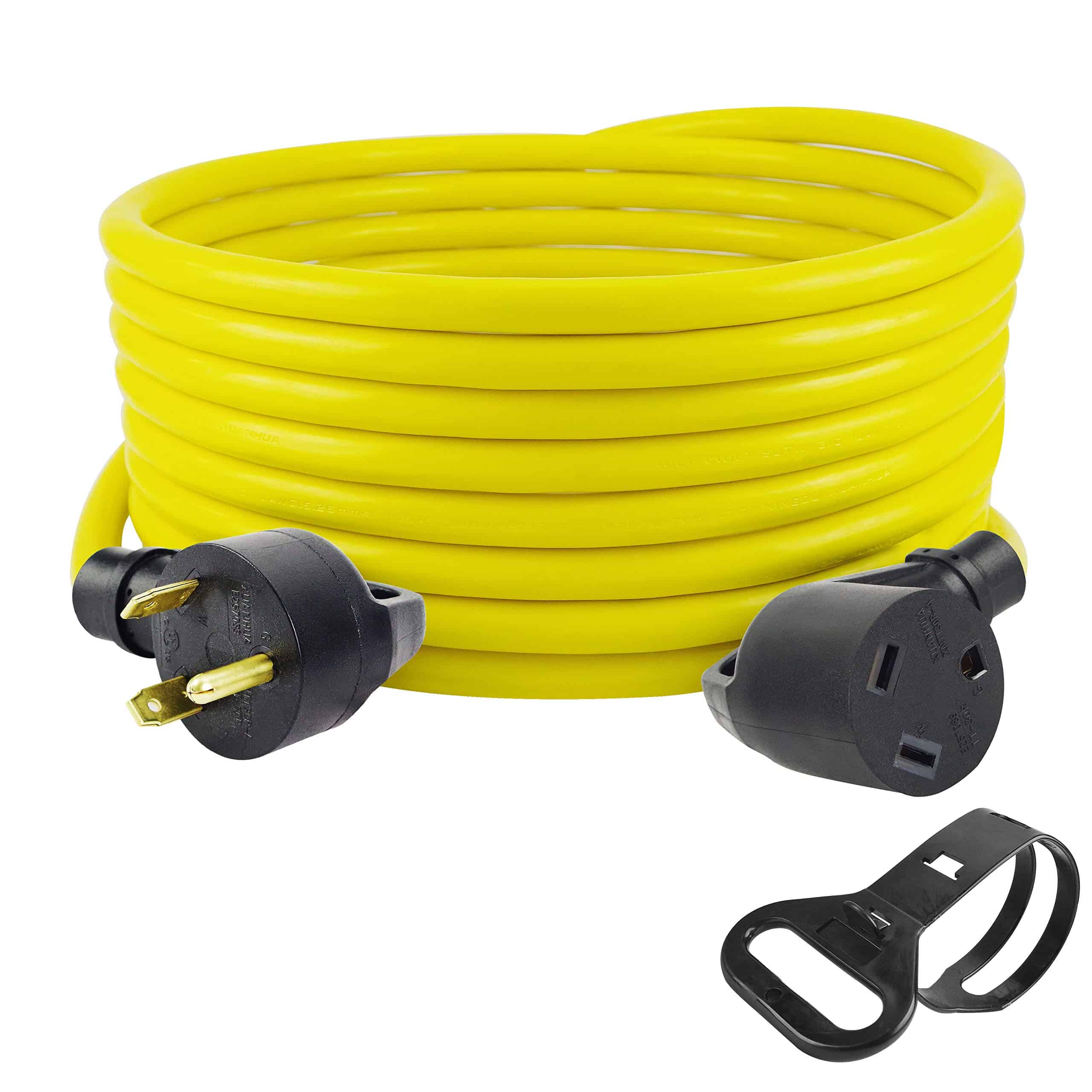 2. Cable de extensión pesado de 25 pies, calibre 10, 30 amperios para excursiones de camping al aire libre en parques de remolques. Perfecto para viajes y extensiones eléctricas portátiles cordón de carga.