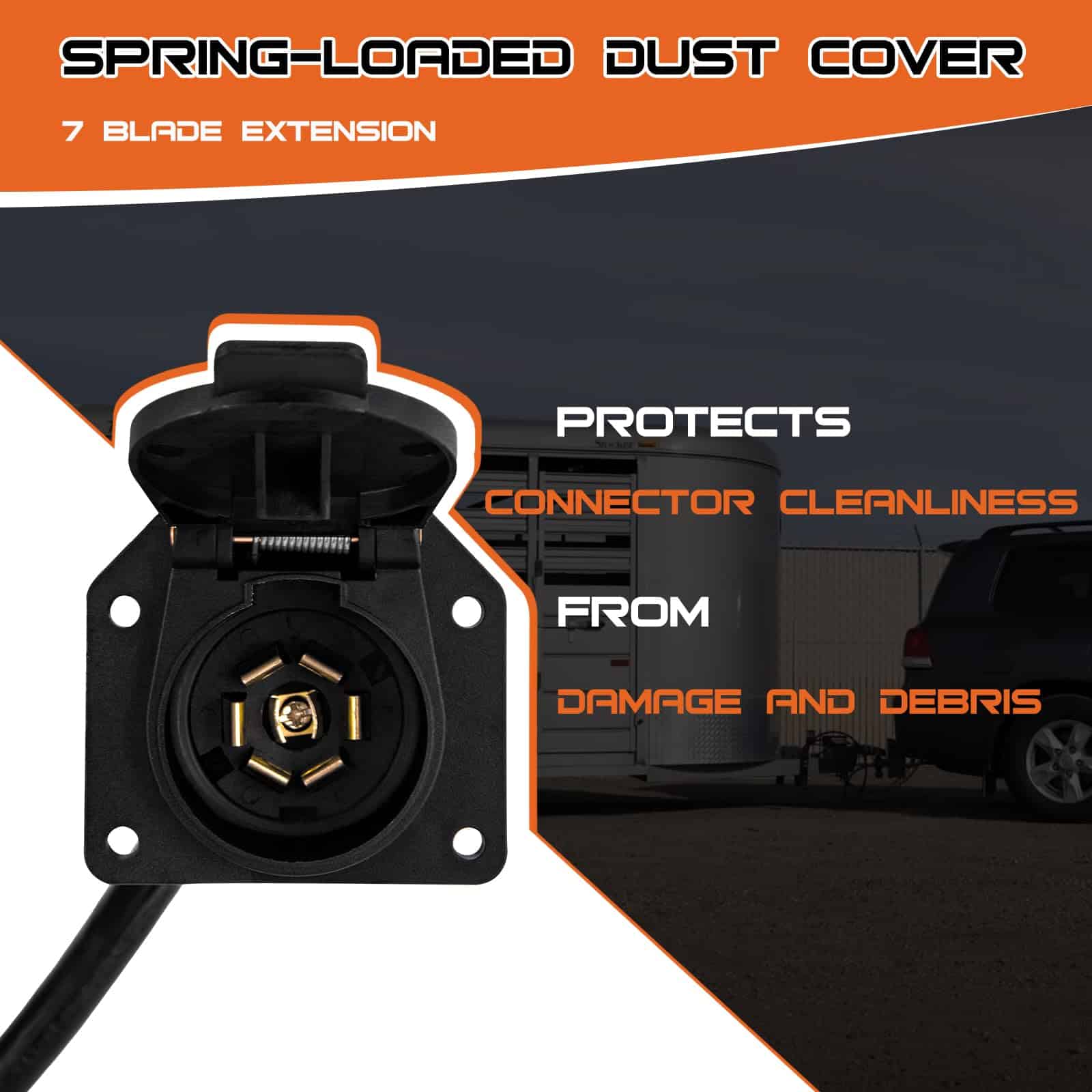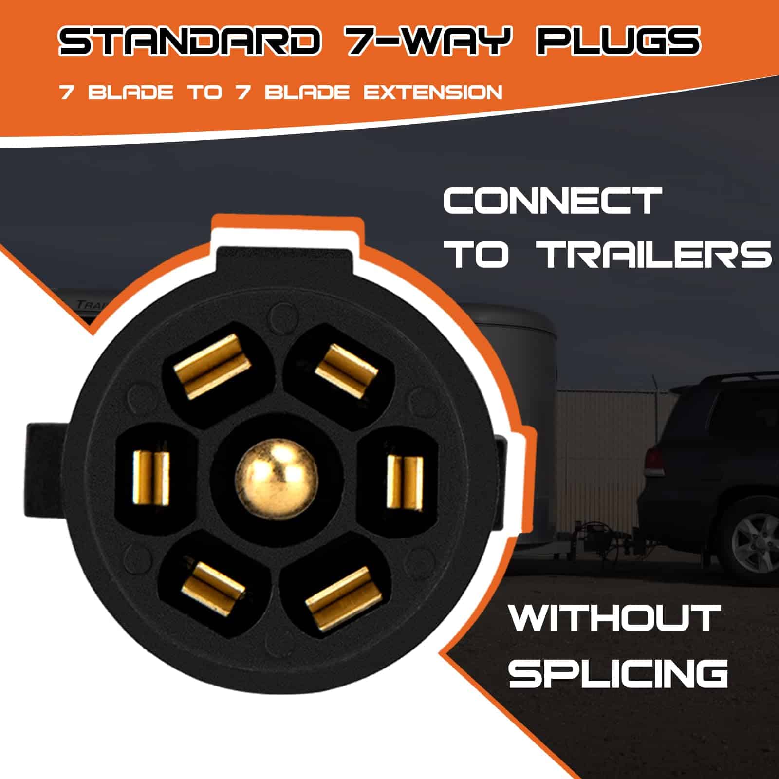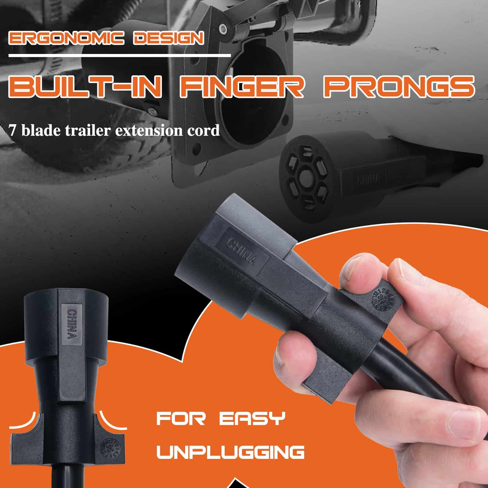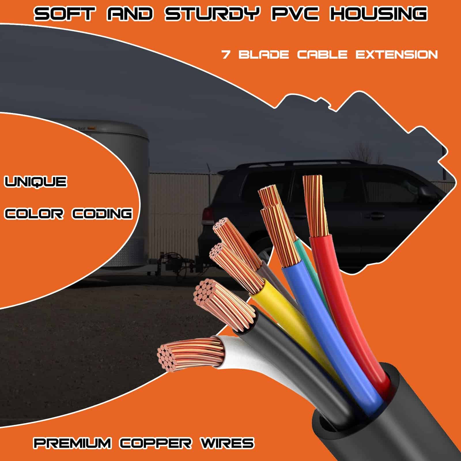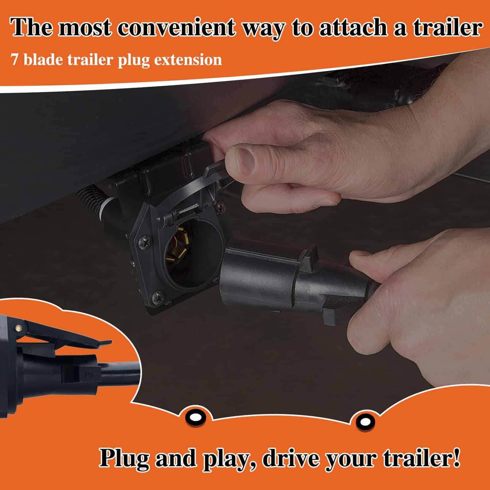 4. Fácil de Usar: No se necesita cableado complicado ni herramientas. Simplemente enchufe este cable de extensión en su enchufe de remolque de 7 vías existente y extienda instantáneamente su alcance en 10 pies. Es una solución conveniente y que ahorra tiempo para todas sus necesidades de extensión de remolque.