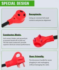 5. SOPORTE AL CLIENTE: Garantía de calidad para todos nuestros cables de RV. El cable de alimentación de RV SCITOO es la opción ideal para reemplazo. Si tienes algún problema con el cable de extensión de energía de RV, contáctanos en cualquier momento y te proporcionaremos una respuesta satisfactoria.