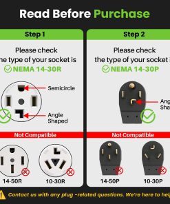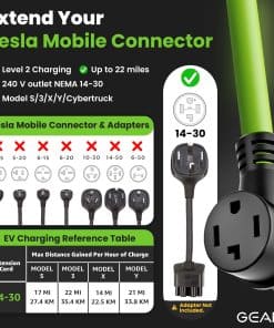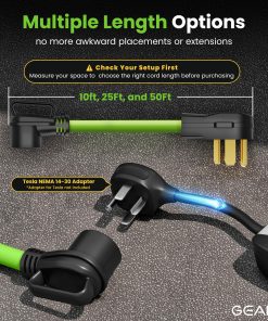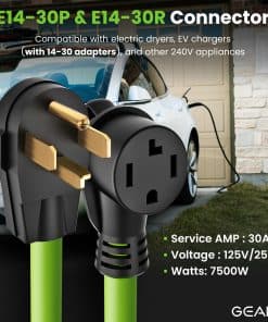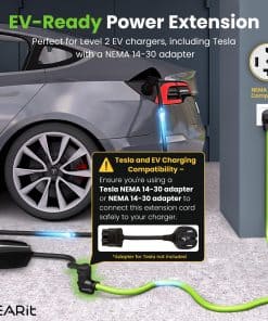 GEARit 30-Amp Extension Cord for Dryer and EV, 125/250-Volt 4-Prong, Compatible with Tesla Model 3 Model Y Model X Model S, NEMA 14-30P to 14-30R, Level 2 EV Charging Cable STW 10AWG/4, 10 Ft, Green