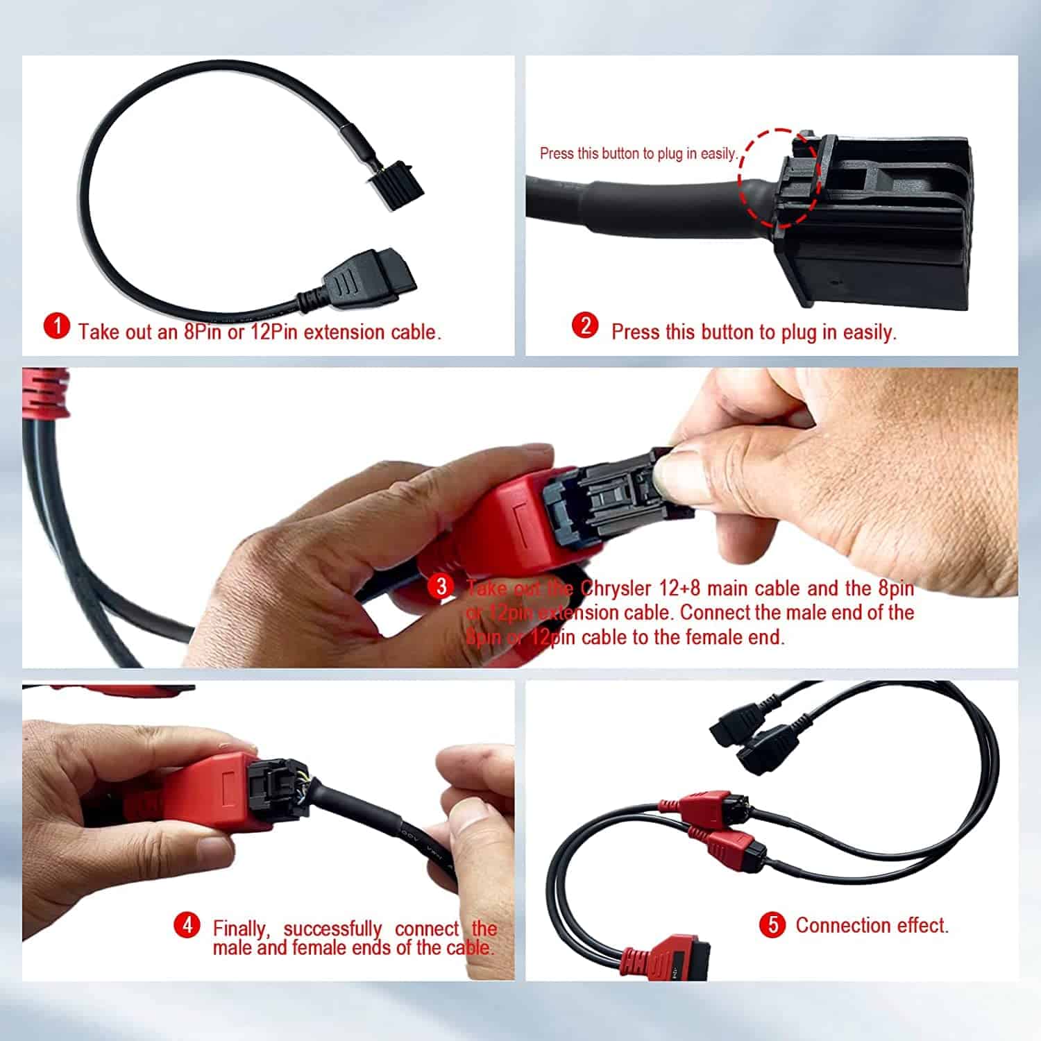 Cable de Extensión Obd2 12 8 para Adaptador DS808 Maxisys MS905 MS906 MS908 Pro Maxisys Élite, Cable de Derivación de Seguridad de 12 8 Pines (4 PCS) – Cable de extensión Obd2 12+8 compatible con varios escáneres para diagnosticar automóviles Chrysler renegade wrangler 300C después del año 2018. El adaptador de extensión de conector 12+8 es un bypass para el Módulo de Puerta de Seguridad de los automóviles Chrysler (SGM), cable de derivación OBD de FCA, adaptador de derivación SGW. Este cable de extensión 12+8 se usa con el escáner MaxiSys para diagnosticar autos como Chrysler renegade wrangler 300C después del año 2018. El adaptador de conector 12+8 es un bypass para el Módulo de Puerta de Seguridad de Chrysler (SGM). Compatible con escáneres de la serie Maxisys, como MS906, MS906BT, MS906TS, MS908, MS908S, MS908S PRO, Maxisys Élite, etc. Plug & play, transmisión estable, anti-jamming. Los materiales de alta calidad ofrecen al cable una flexibilidad y durabilidad superiores. Garantía de 36 meses que cubre todos los productos. Elija nuestro producto si desea calidad, servicio y una experiencia de selfie memorable. Respaldamos su satisfacción del 100%.
