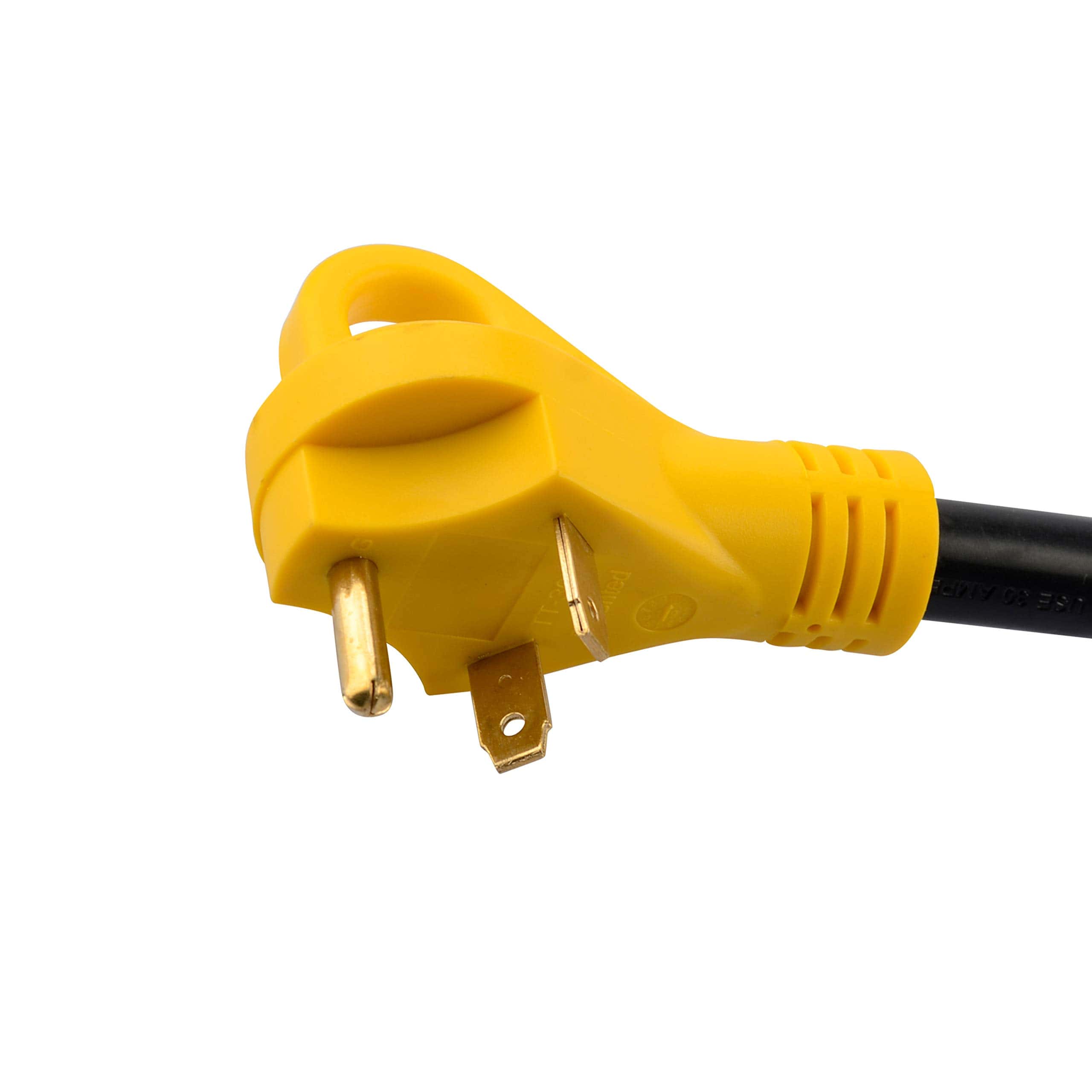1. Construcción resistente de 10/3 AWG: Hecho de cobre duradero de calibre 10/3 (10/3 AWG) para una transferencia de energía confiable, diseñado para manejar cargas de 30 AMP para alimentación constante de RV.
