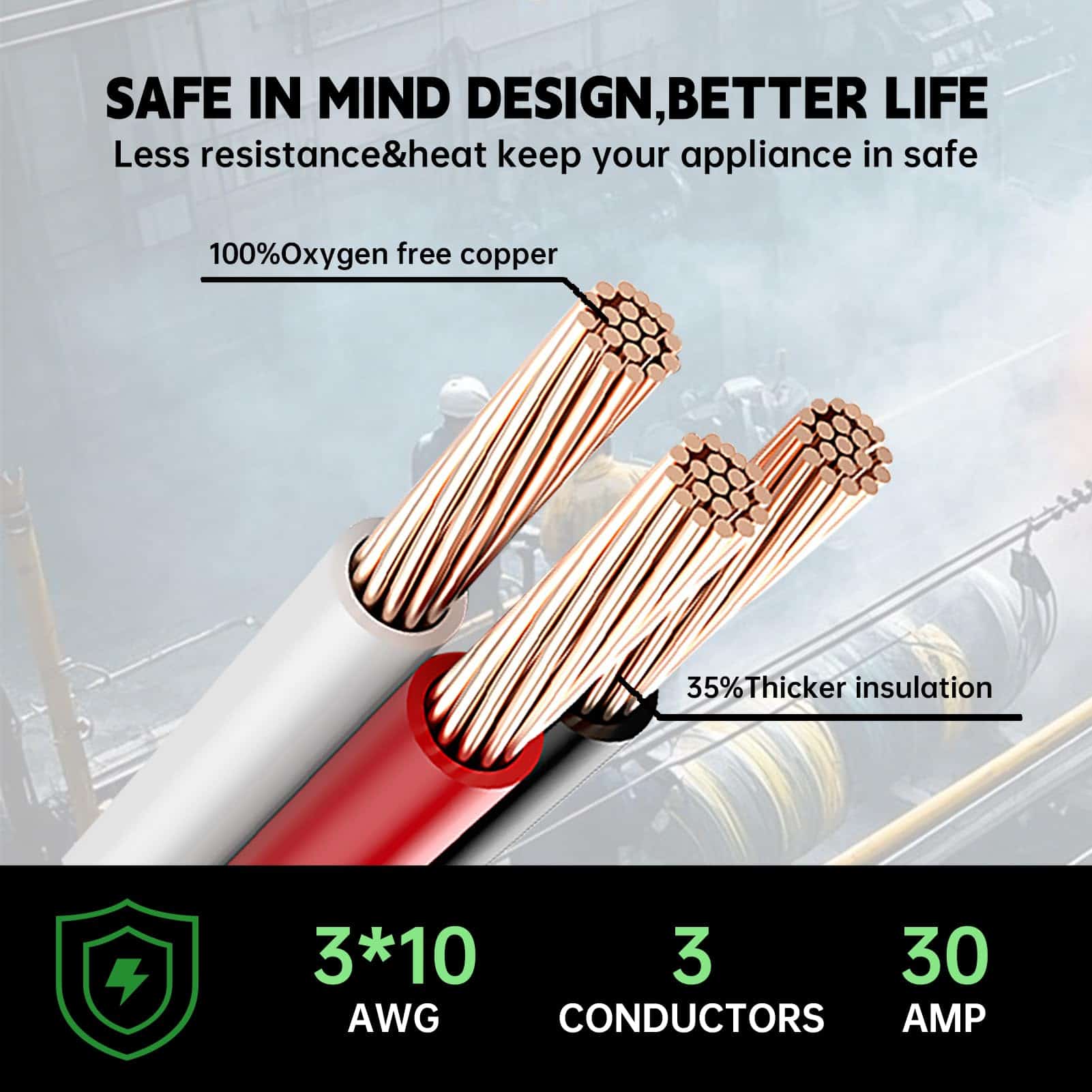 Cable de Extensión para RV de 25FT 30 Amp: Cable RV de 3 Puntas de 10 FT; 30 Amp, 125V, NEMA TT-30P Macho a NEMA TT-30R Hembra, STW 10/3 AWG; Cable RV al aire libre de 30 amp ideal para autocaravanas, remolques de viaje, vehículos y campistas exteriores.