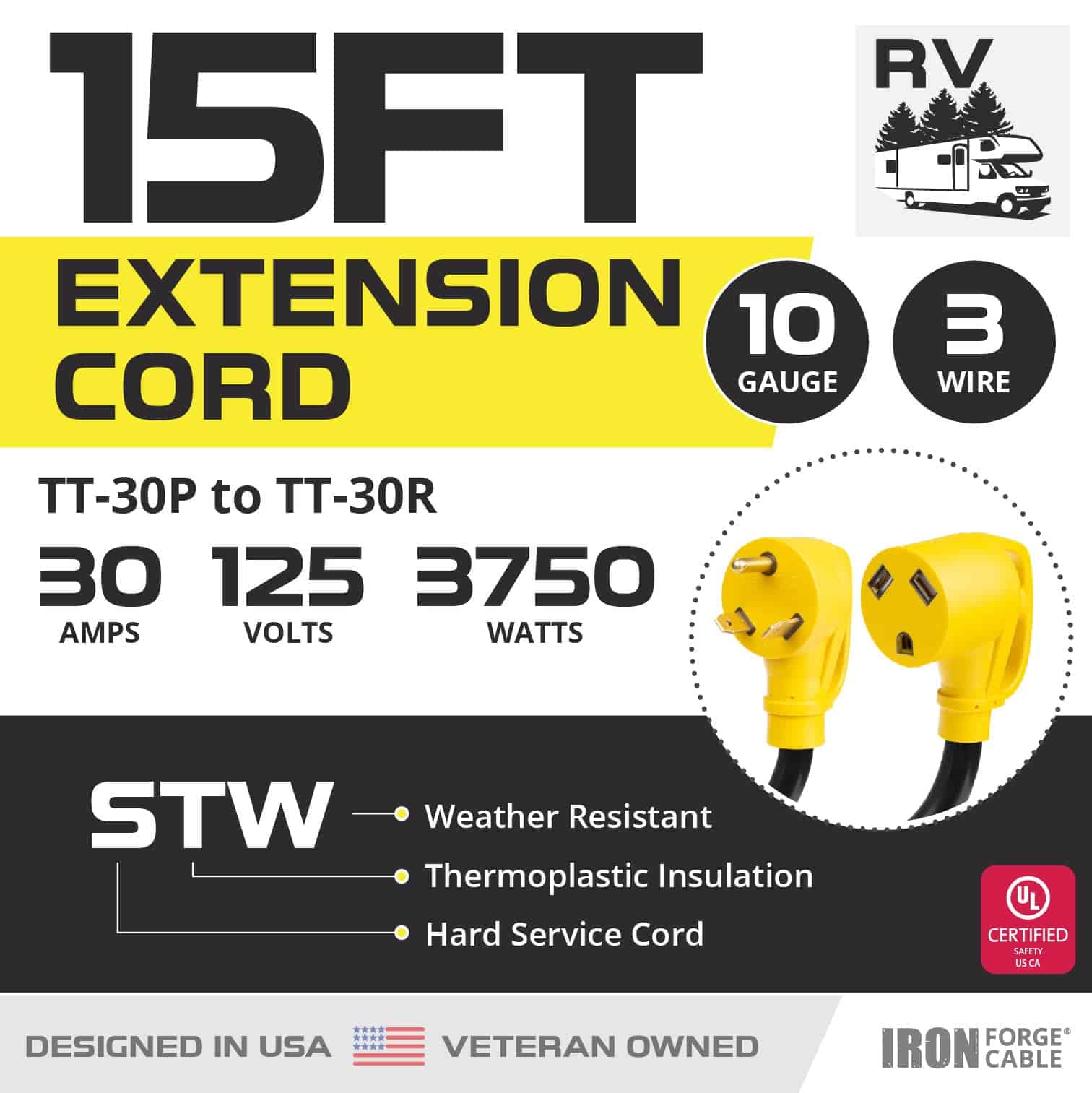 Cable de extensión para RV de 30 amperios de Iron Forge