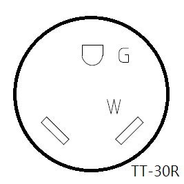 Enganche el enchufe de entrada de energía RV de 30 amperios de 3 conductores TT-30R. Cinco opciones de longitud.