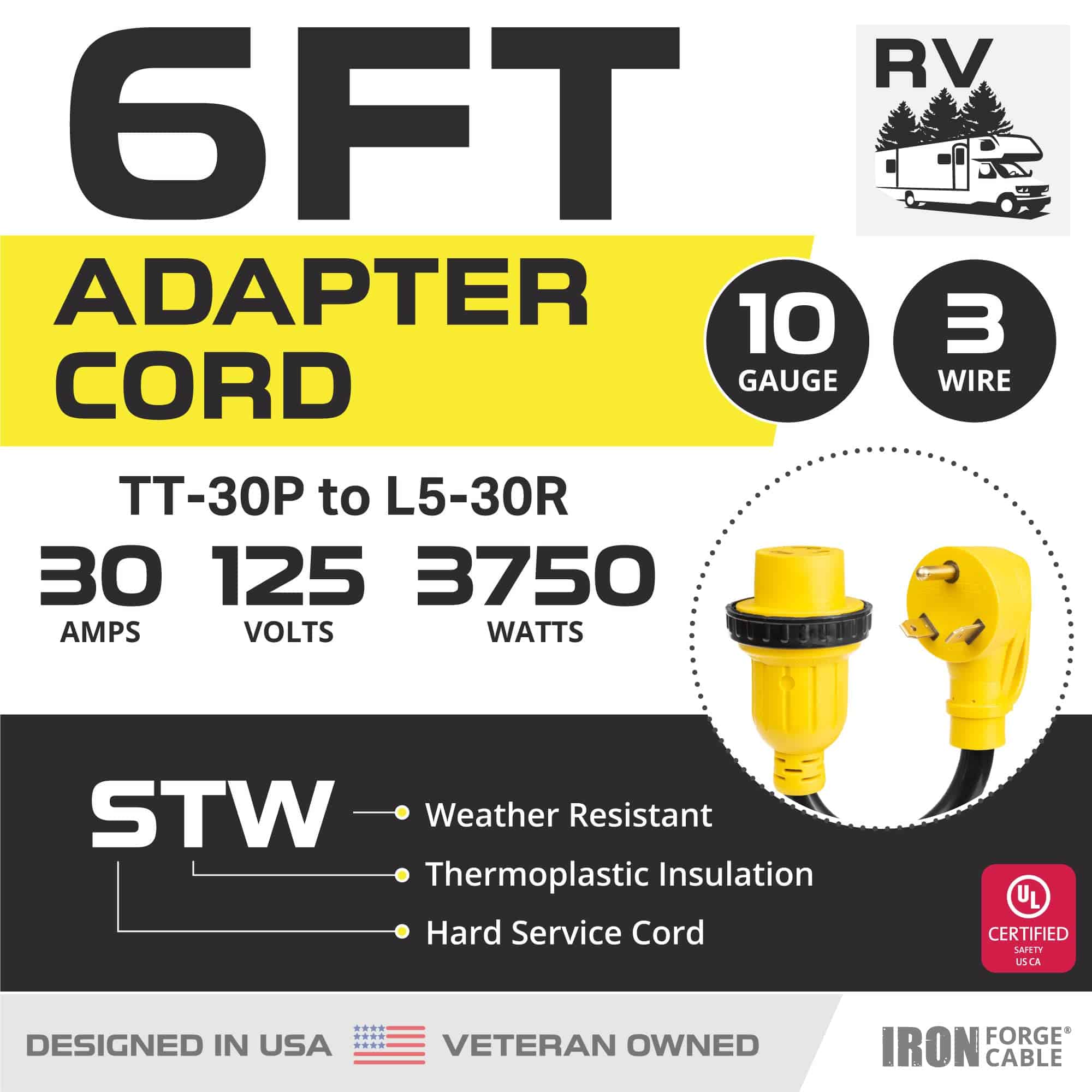 Cable de extensión para RV de 30 amperios Iron Forge 6 pies