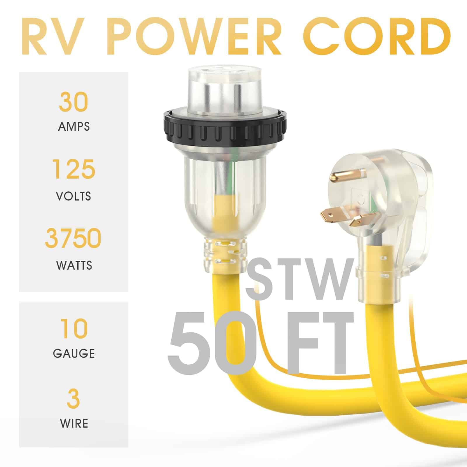 Cable de extensión para RV de 30 amperios TOOLIOM 50 FT,