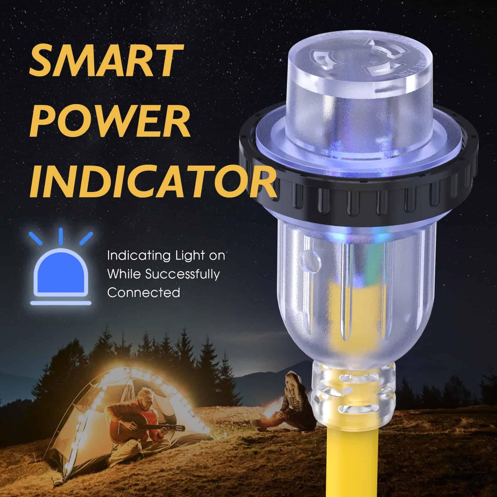 5. Incluye un adaptador de energía para RV de 15A macho a 30A hembra para cuando el RV tiene energía de 30A y necesita conectarse a una fuente de 15A.