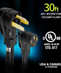 Cable de extensión RV/EV de 30 pies y 50 amperios para