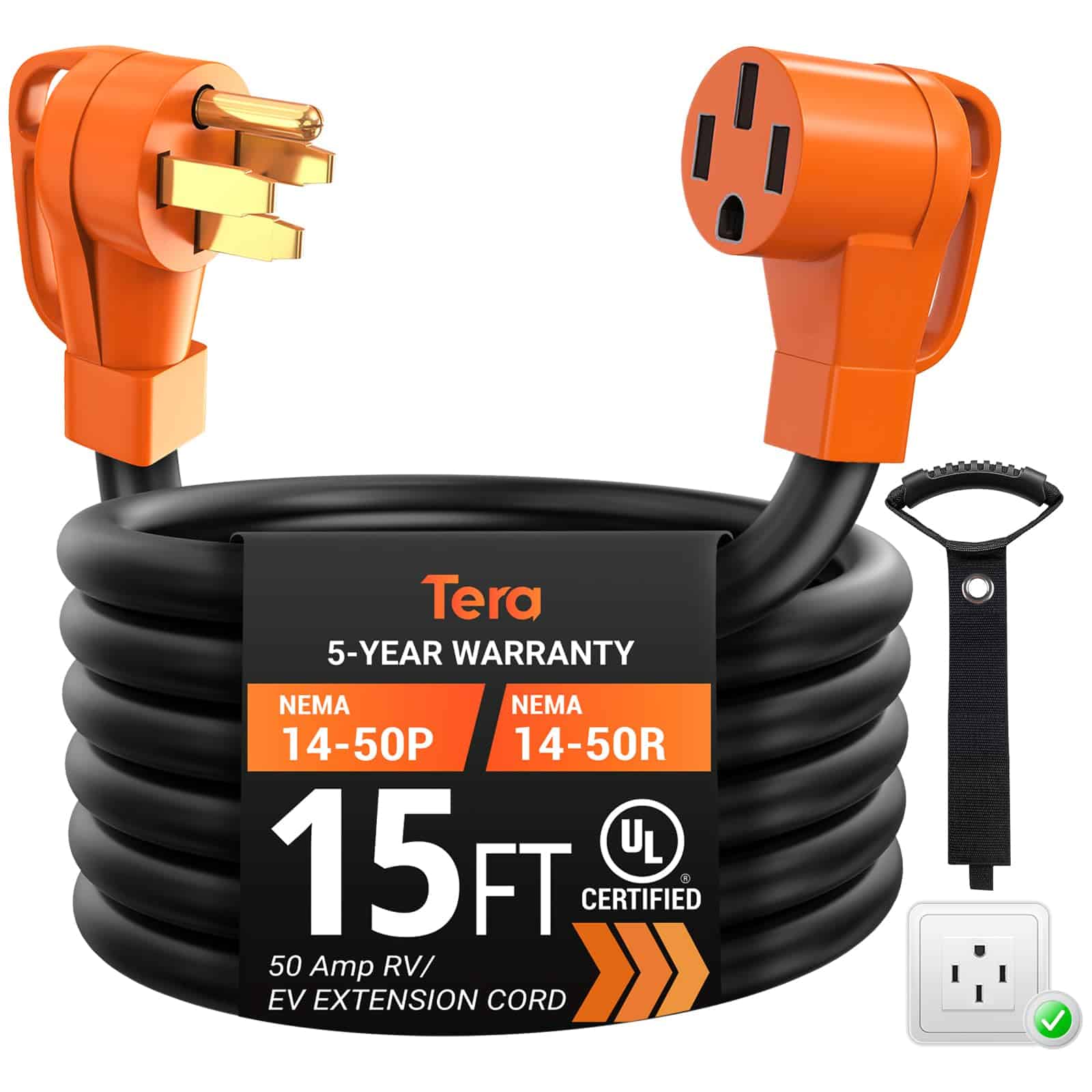 Cable de Extensión Tera 50 Amp RV & EV 15 FT: NEMA 14-50P a