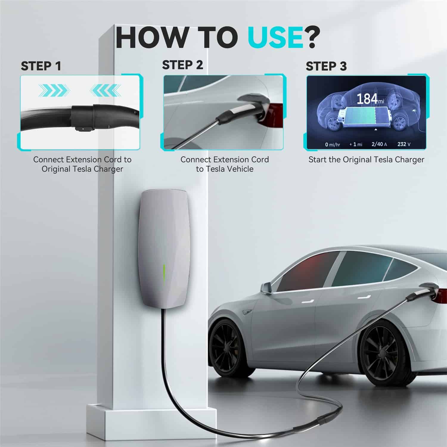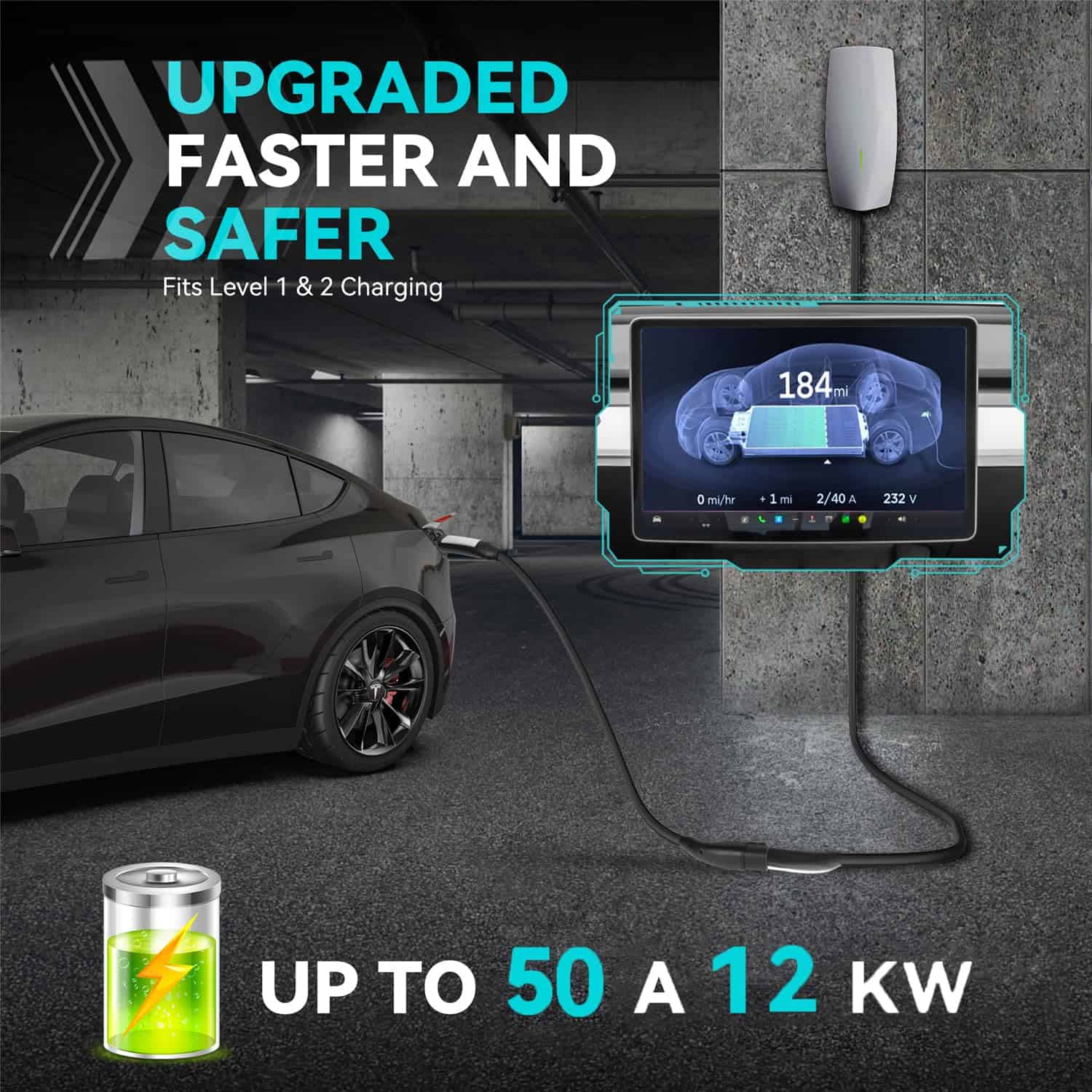 Cable de Extensión Tesla TRFIKNE 40ft 50A, Cable de Carga